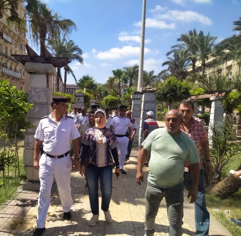 كما قامت بتفقد حالة النظافة بالميادين والحدائق وتم العمل على رفع كفاءة النظافة بالتنسيق مع شركة نهضة مصر.