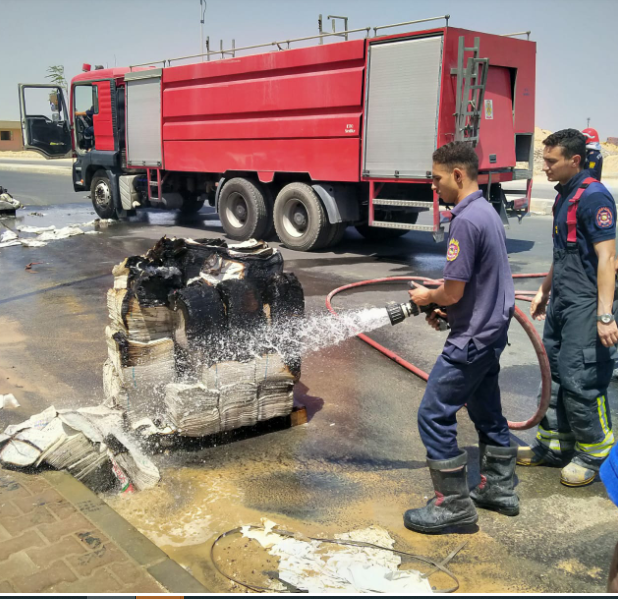 المعمل الجنائي يعاين حريقا نشب داخل مصنع طباعة وتغليف بالروبيكي