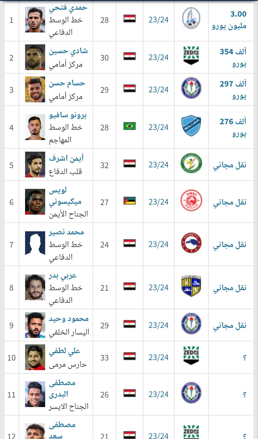 _ ورحل الخماسي (أيمن أشرف إلي البنك الأهلي، لويس ميكسيوني إلى سيمبا، محمد نصير إلى فيوتشر، عربي بدر إلى المقاولون، محمود وحيد إلى سموحة) في صفقة انتقال حر.