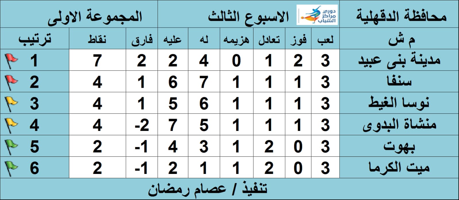 جدول ترتيب نتائج دوري مراكز الشباب لفرق الدقهلية النسخة العاشرة 2023