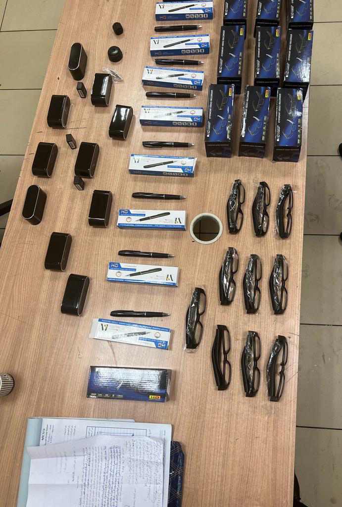 وبتفتيش حقائبه على جهاز الفحص بالأشعة بواسطة كل من محمد جمال الدين مأمور الجمرك وأحمد الشريف رئيس القسم واللذان تلاحظ لهما وجود عبوات متكررة ومتماثلة بكثرة داخل حقائب الراكب، قام هاني أحمد أبو طالب مدير الحركة المشرف على صالة الوصول بمبنى الركاب رقم ٣ بتكليف محمود محمد فتحي مأمور الجمرك بتفتيش حقائب الراكب يدويا مما أسفر عن وجود كمية من مستلزمات التليفون المحمول، قامت أميرة طلبة مدير الجمرك بتكليف لجنة مكونة من هيثم أحمد عبد الحكم وهيثم محمد ومحمد مكاوي وأحمد عادل ومها ممدوح تحت اشراف ريمون غطاس ومحمد عبد الباقي مديرا الحركة وفي حضور الدكتور مصطفى أبو الوفا من إدارة الأمن الجمركي وذلك لجرد وتوصيف وتحريز المضبوطات والتي بلغ عددها ٣٣٠ شاشة تليفون محمول و٩٠ سكرينة خاصة بهم.