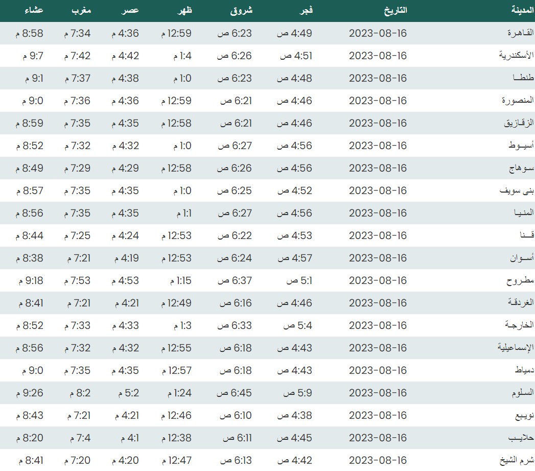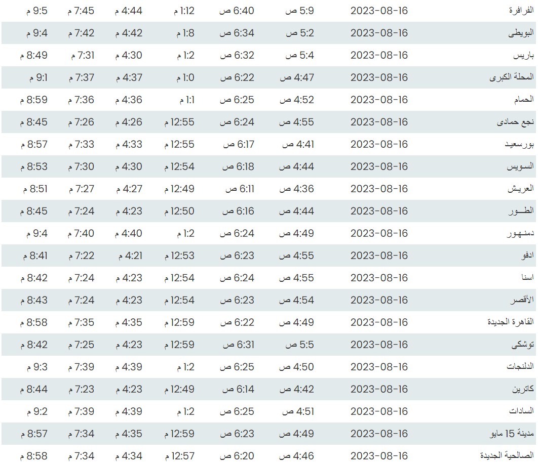 مواقيت الصلاة اليوم بتوقيت القاهرة