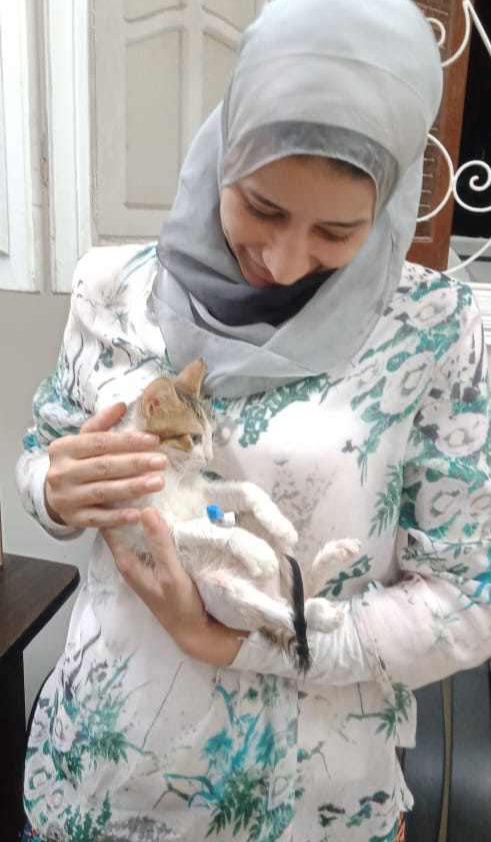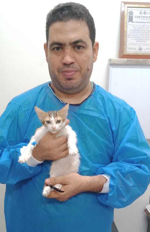 وقالت أية طارق إنها تعمل مدربة تنمية مهارات ذاتية وعثرت علي القط بعد اختفاءة لمدة 20 يوم والذى حضر إليها ليستغيث بها وهو يسير بشكل غير طبيعي بعد تعرضه لإصابة في الشارع تعرض على اثرها للكسر وقمت بنقله لأكثر من طبيب بيطرى وكانت تكلفة العلاج كبيرة حتى تم إرشادي للدكتورعبد الحليم القصبي الذي قام بفحصه فحص شامل وعمل أشعة سينيه وتم تخديره وإجراء عملية جراحية استغرقت ٤٠ دقيقة وتم تسليمه لى.