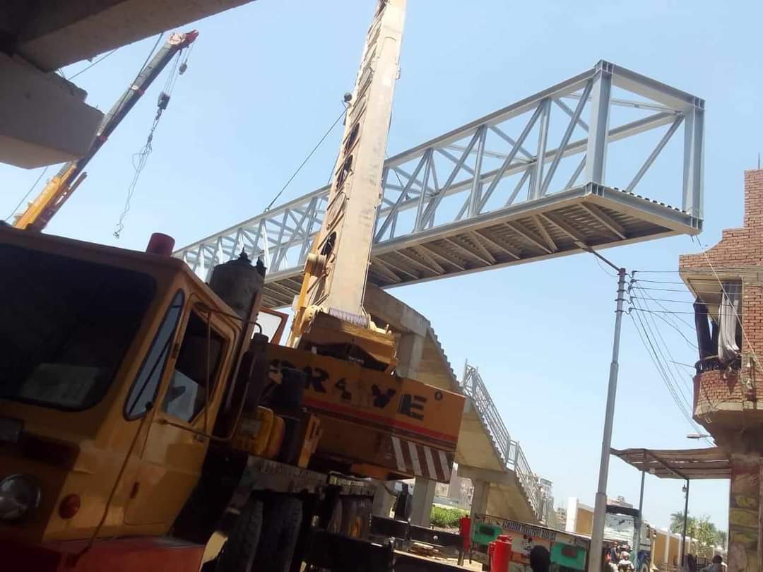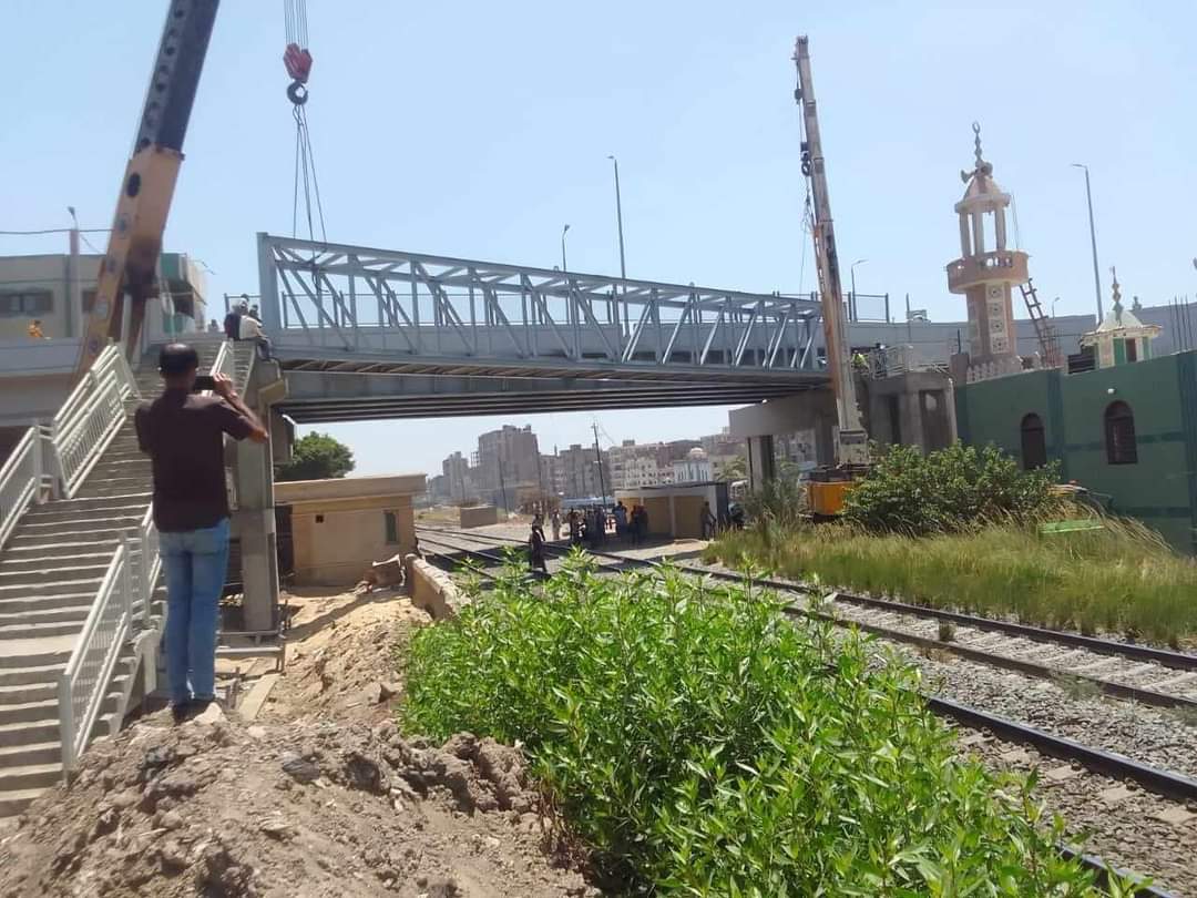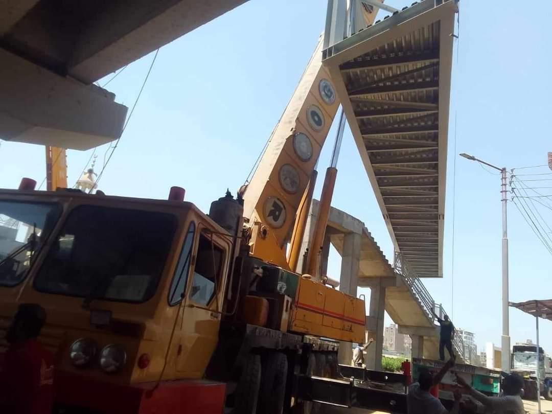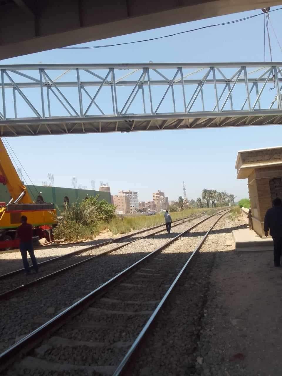 بدء تركيب الكمرات الحديدية على كوبرى مشاة الملكية بملوي بالمنيا (صور)