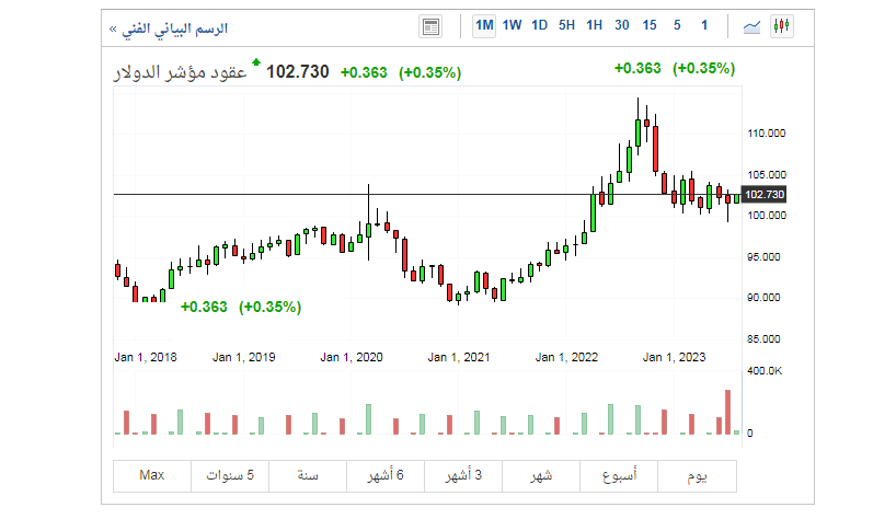مؤشر الدولار الأمريكى مقارنة مع العملات الأجنبية السته الأخرى