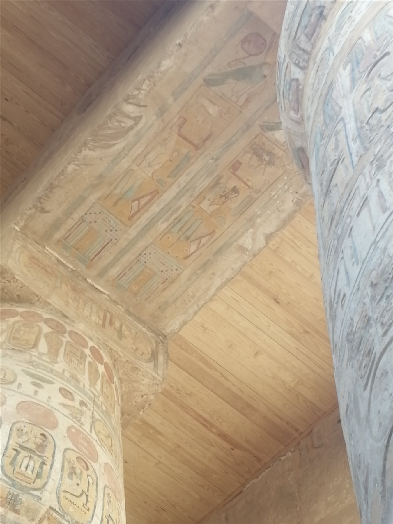 وأخيرا وليس أخيرا، لا يعلم أحد من المنتقدين لفكرة تغطية الصالة بسقف خشبي ما كابده السادة المسئولين في وزارة السياحة والآثار والمجلس الأعلى للآثار ومنطقة آثار الكرنك من السادة الزملاء الاعزاء سواء أثريين أو مرممين ( وأخص بالذكر السادة المرممين بسبب معاناتهم مع الارتفاعات أو الجو سواء في حرارة الشمس الحارقة في الصيف وبرودة الطقس في الشتاء )، أو متدربين وعمال من عناء وصعوبات في سبيل أن تبدو الصالة ومناظرها وألوانها كما ترونها حضراتكم فيكفي أن تعرفوا أن العمل يتم علي ارتفاع ٢٣ متر تقريبًا من مستوي سطح الأرض وهذا مثال واحد فقط علي الصعوبات والعقبات التي يقوم بها فريق العمل في مجال حفظ وصيانة ألوان هذه الصالة.