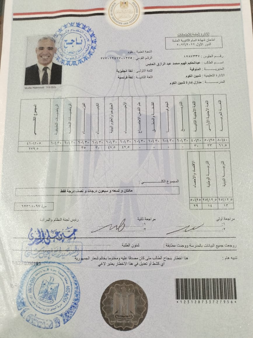 عبد الحكيم الحايس ابن محافظة المنوفية، ويقطن في عاصمتها شبين الكوم، أكبر طالب في الثانوية العامة لعام 2023، والبالغ من العمر 47 عامًا، تمكن من الحصول على 69% شعبة علمى علوم ليحقق حلمًا طال انتظاره لسنوات طويلة.