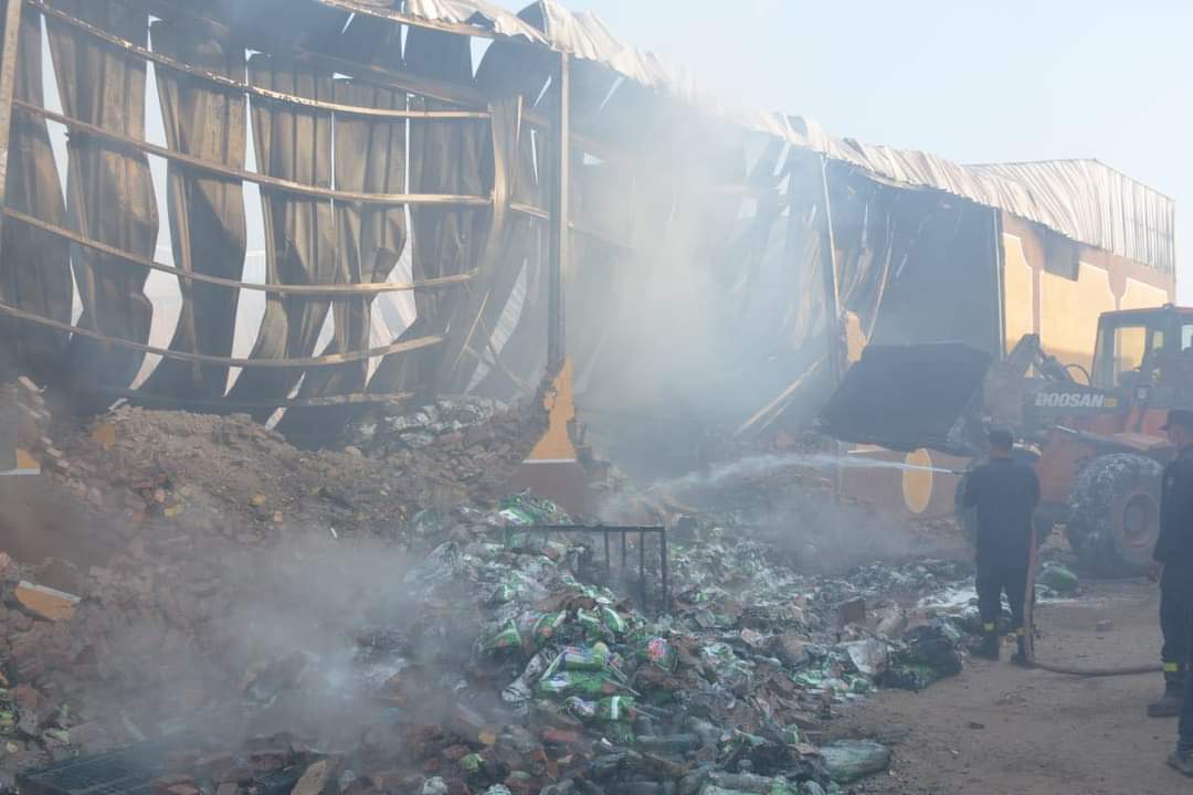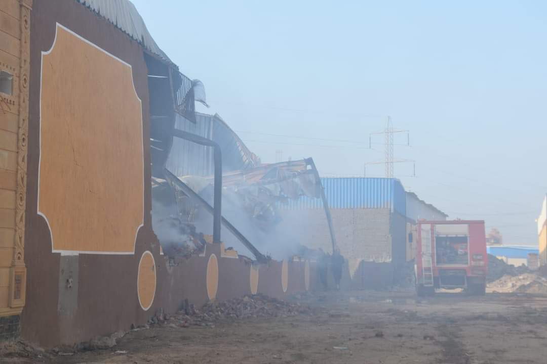 6 سيارات للسيطرة على حريق مخزن للمواد الغذائية بالخانكة (صور)