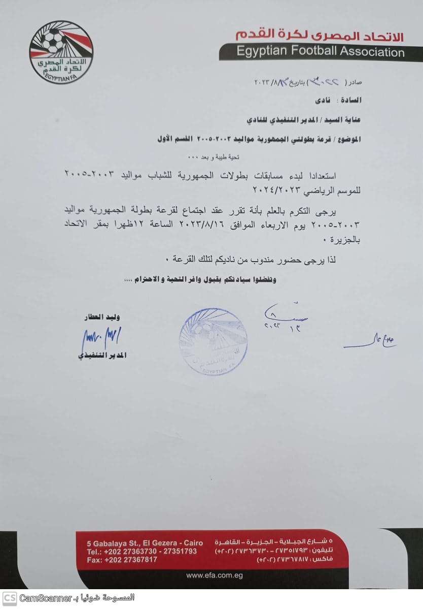 وأكد اتحاد الكرة في خطابه، عمل أشعة الرسخ لمواليد 2008 للاعبين الجدد الذين لم يتم عمل الأشعة لهم الموسم الماضي وجميع اللاعبين مواليد 2009.