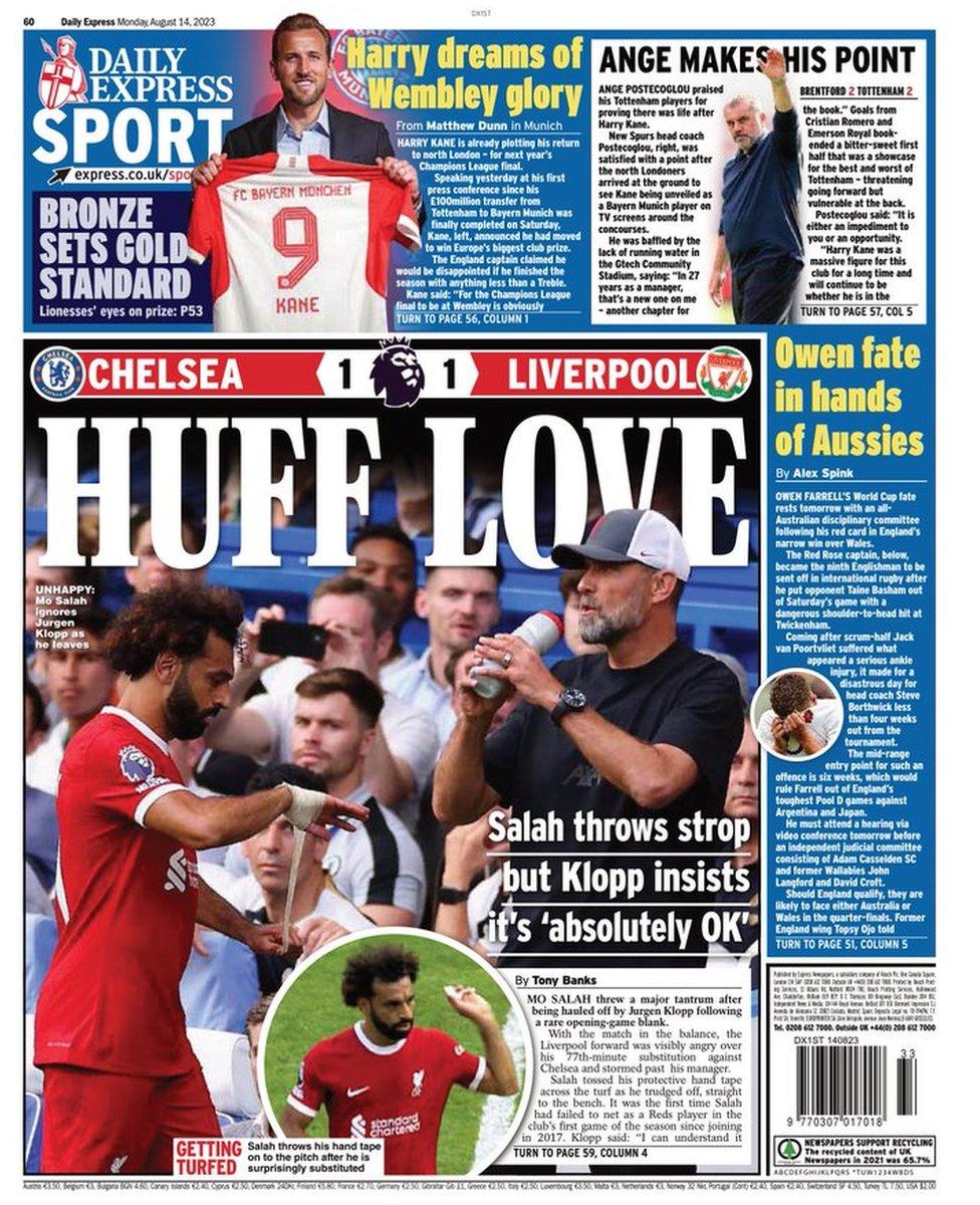 أما صحيفة "ديلي ستار" فعنونت: "حدة مو تجاه كلوب.. صلاح المستبدل يستشيط غضبا على اقتياده للخارج".