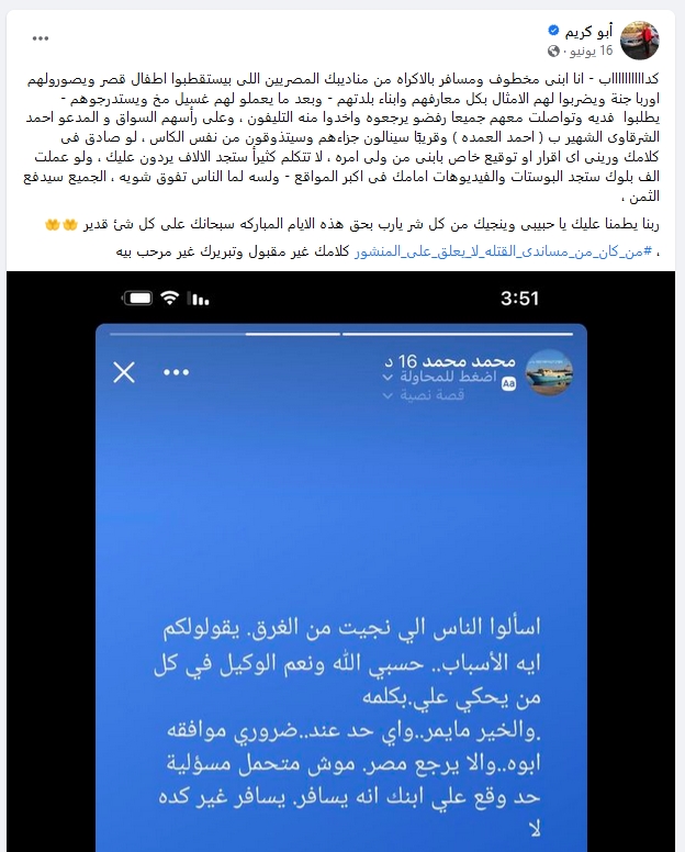 اقرأ ايضا: مفاجأة بحادث مركب الهجرة الغارق في اليونان تؤكد براءة 9 مصريين من الجريمة