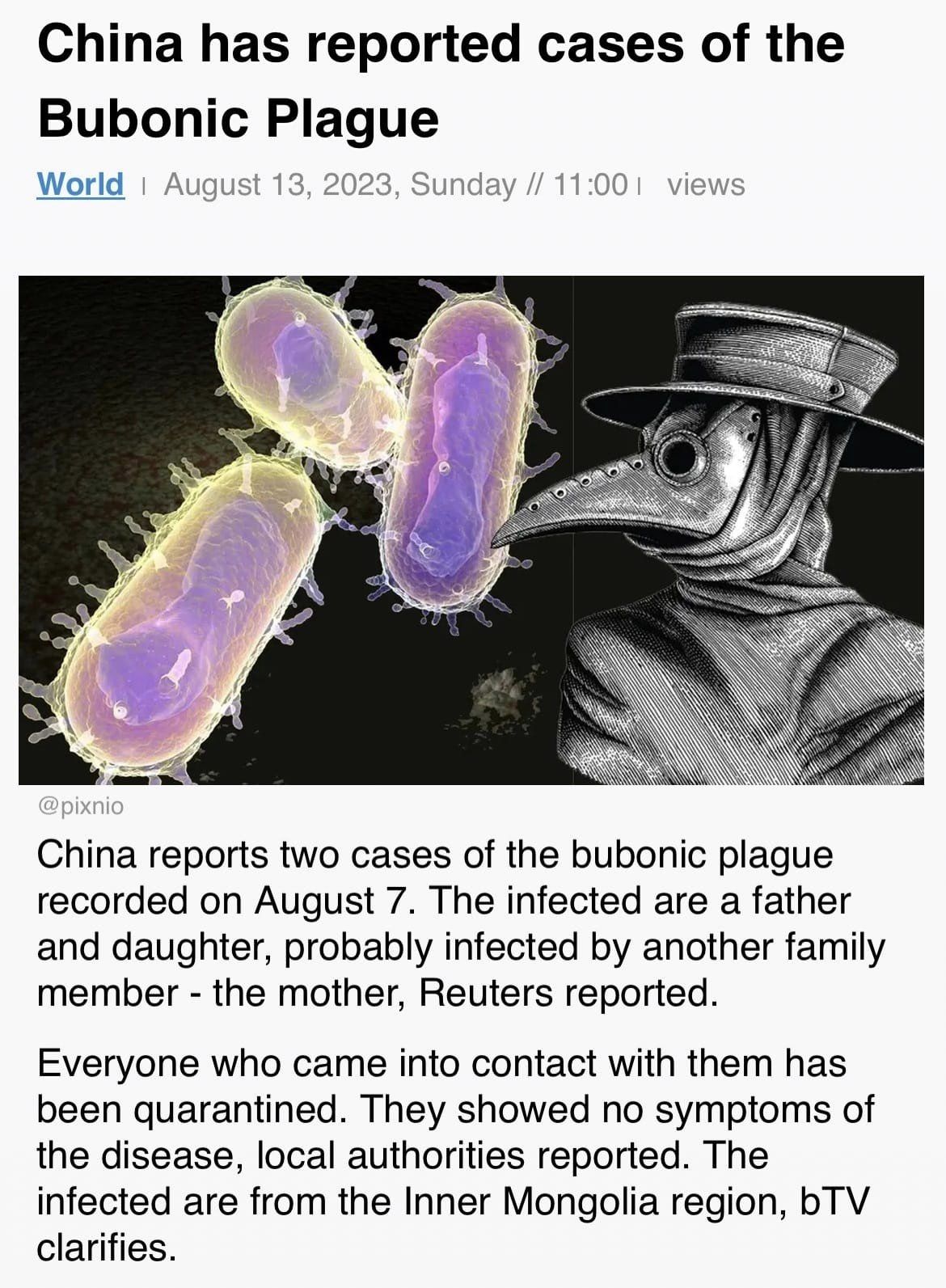 الصين تسجل حالتين لمرض الطاعون