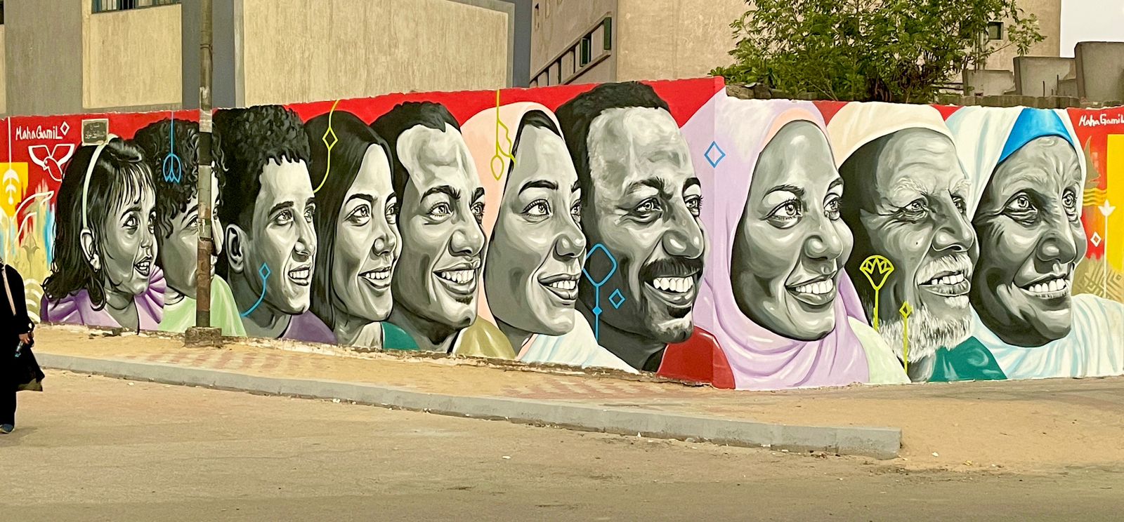 جدارية لوجوه مبتسمة تزين كورنيش النيل في أسوان (صور)