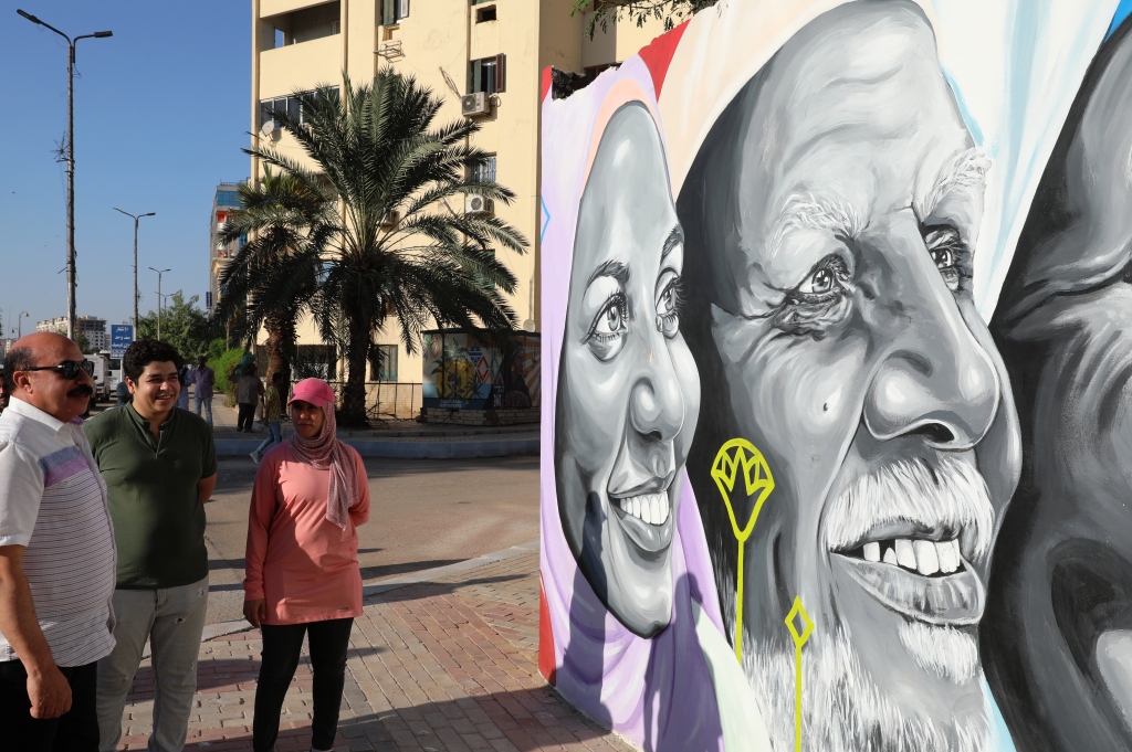 لاضفاء لمسة جمالية بشارع كورنيش النيل فى مدينة أسوان، رسم الفنانان على عبد الفتاح ومها جميل جدارية تضم وجوها أسوانية مبتسمة، تم اختيارهم من خلال منشور على موقع التواصل الاجتماعى "فيس بوك" بأعمار مختلفة.