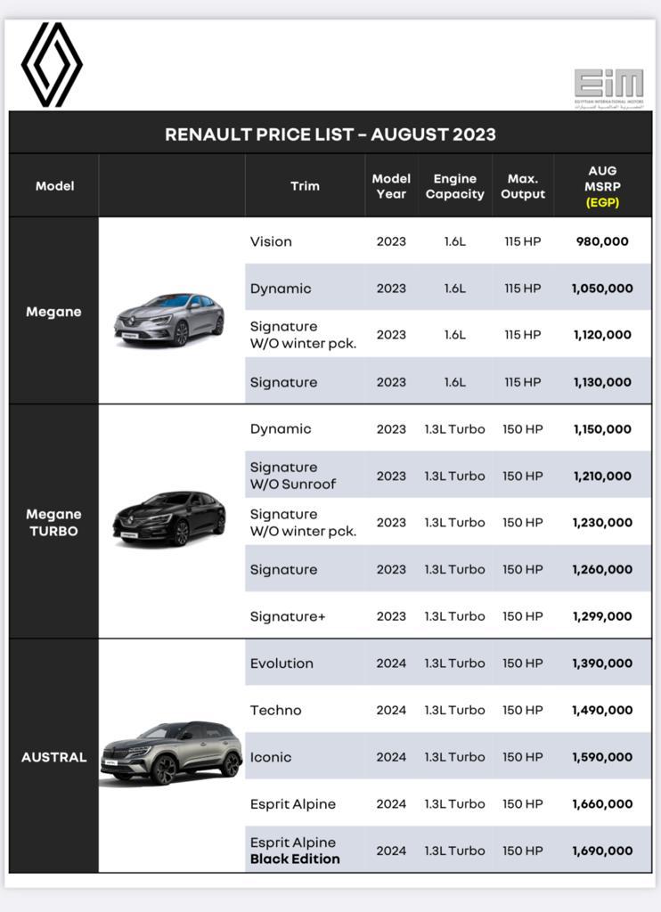ونستعرض فى التقرير التالى أسعار سيارات رينو داخل السوق المصرى بعد الزيادة الجديدة التى لحقت أسعار الشركة خلال شهر أغسطس الجاري.