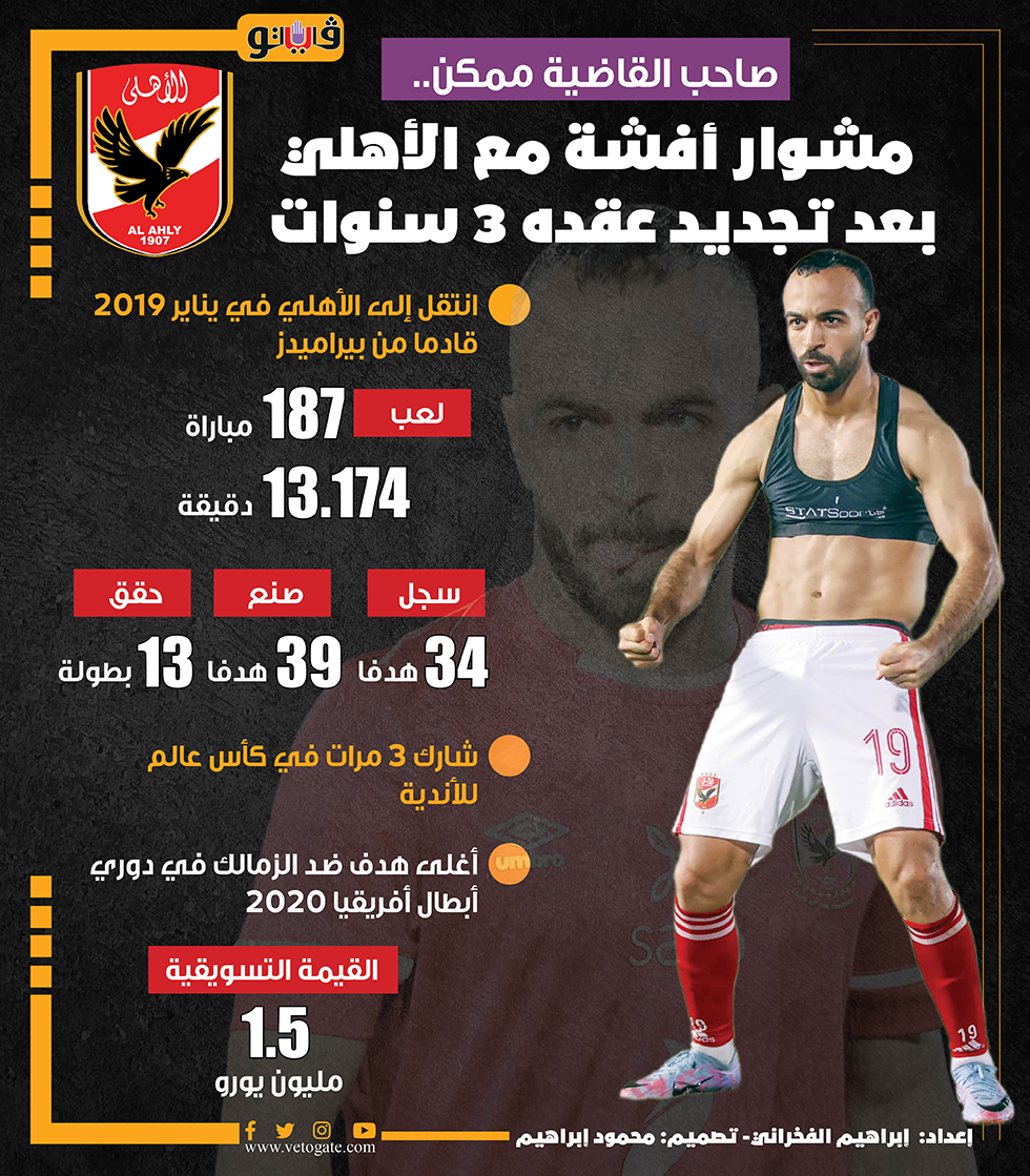 صاحب القاضية ممكن.. مشوار أفشة مع الأهلي بعد تجديد عقده 3 سنوات (إنفوجراف) الإثنين 14/أغسطس/2023 - 07:35 م 8/14/2023 7:35:00 PM أفشة، فيتو إبراهيم الفخراني شارك طباعة 18 حجم الخط شارك طباعة الأهلي محمد مجدي أفشة أفشة تجديد عقد أفشة اخبار الأهلي