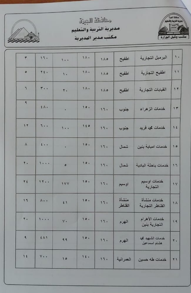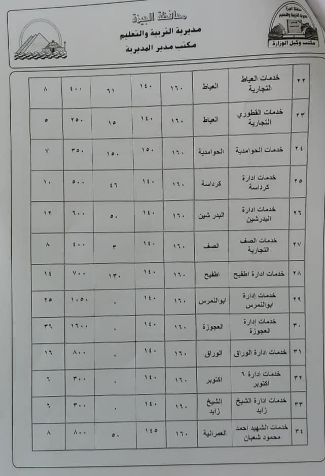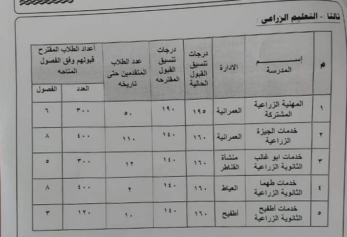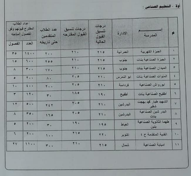 كما قرر محافظ الجيزة تخفيض القبول بمدارس التعليم الصناعي والزراعي والتجاري وذلك وفقا للكشوف المرفقة والتي تضم المدارس وتنسيق القبول الخاص بكل منها.