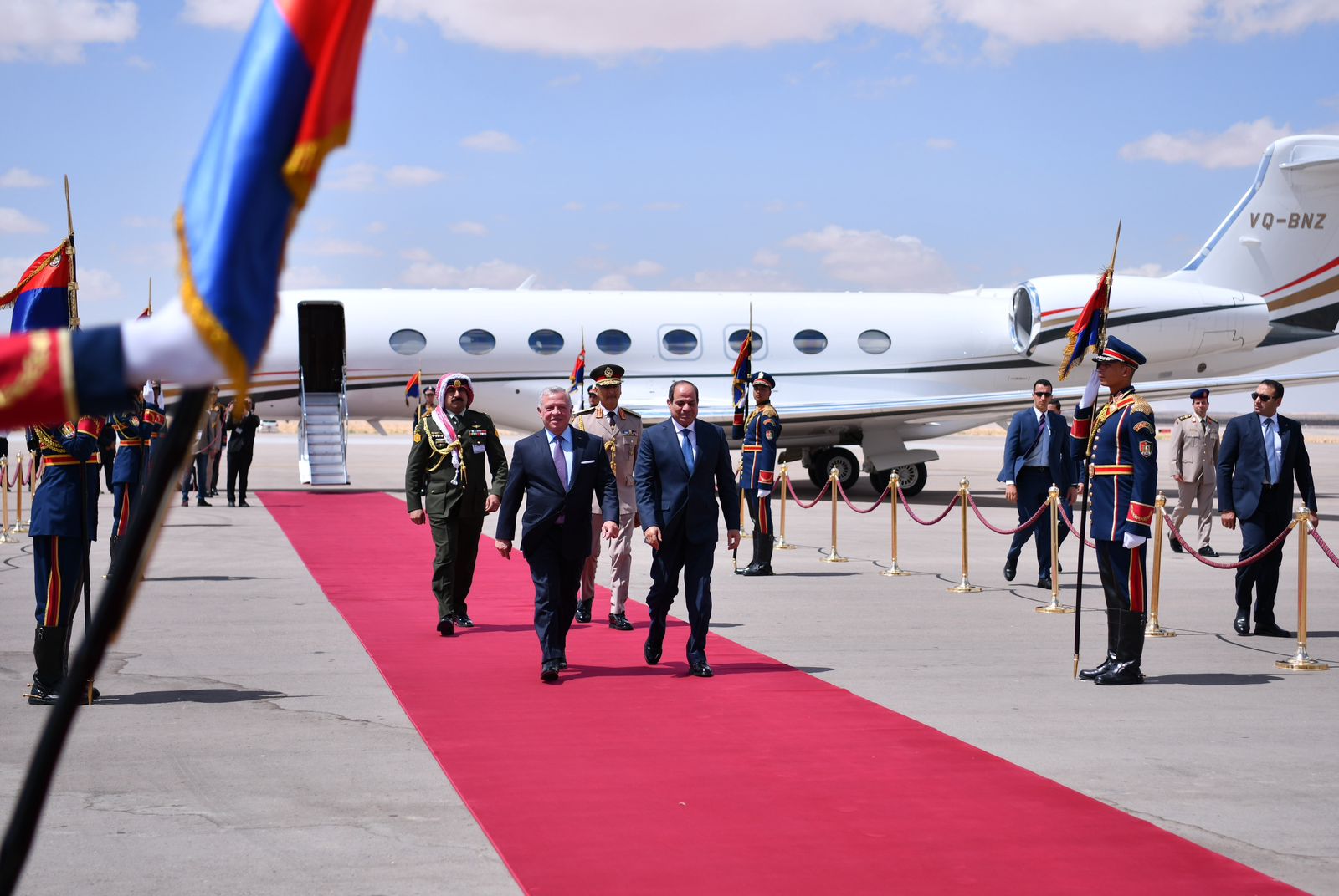 السيسي يودع رئيس فلسطين وملك الأردن عقب المشاركة في قمة العلمين (صور)