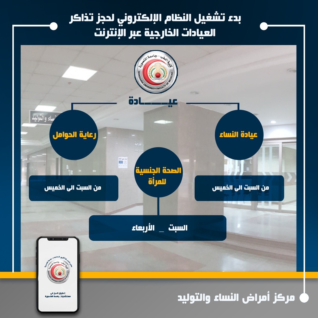 عيادة الحجز الإلكتروني: السبت, الأحد, الإثنين, الثلاثاء, الأربعاء, الخميس