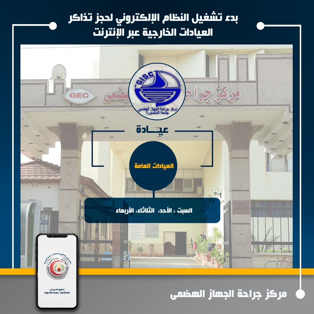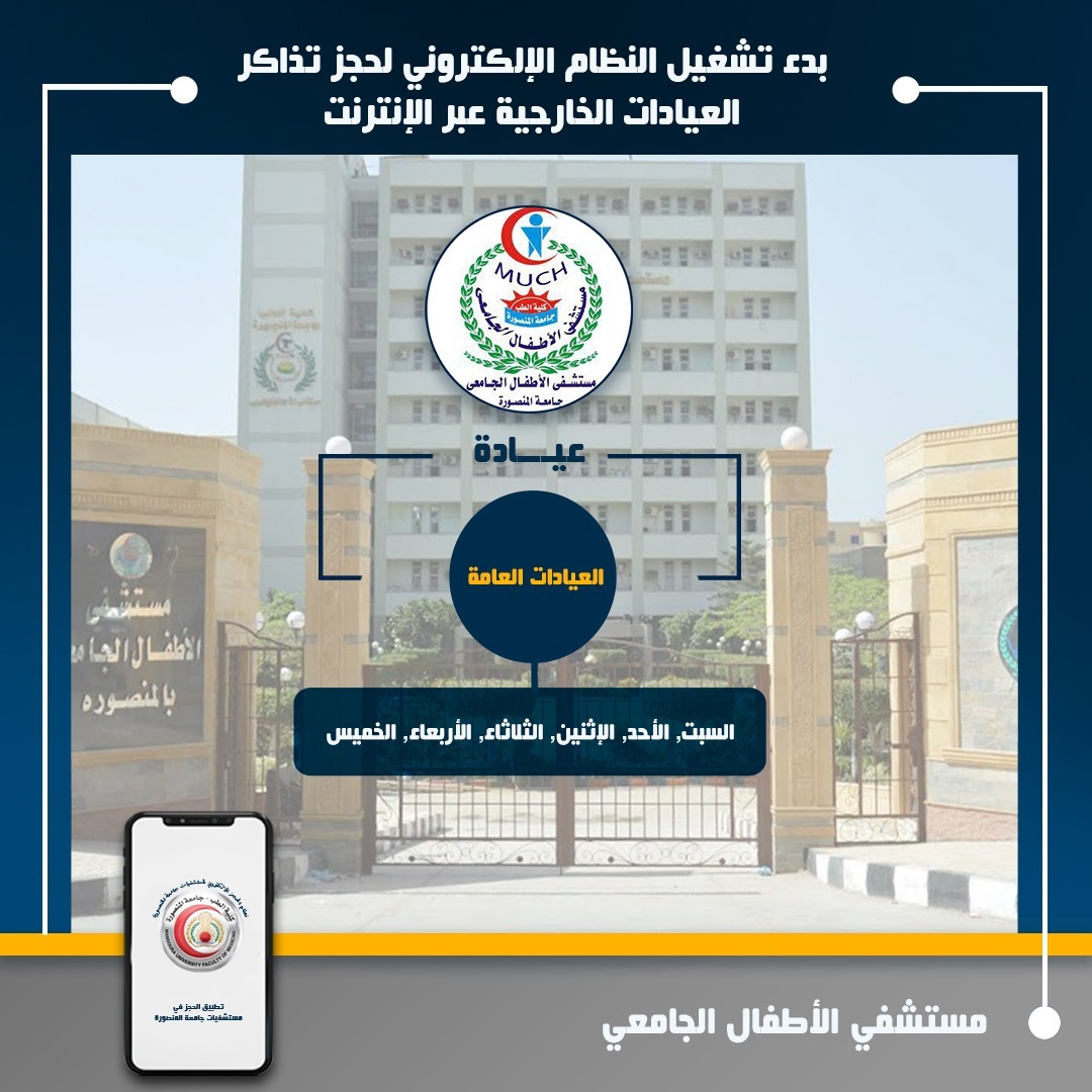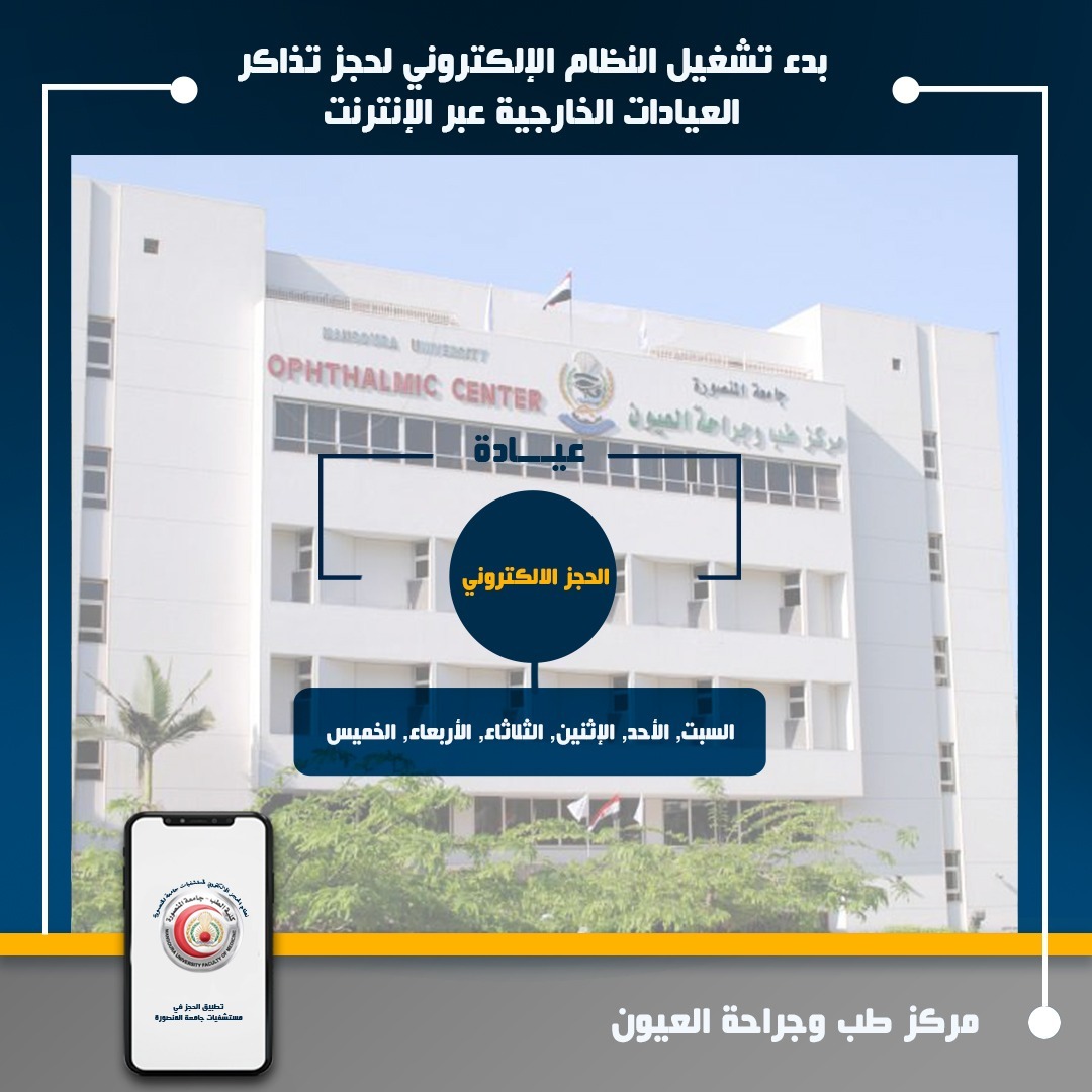 أعلنت جامعة المنصورة اليوم بدء تشغيل النظام الإلكترونى لحجز تذاكر العيادات الخارجية للمستشفيات والمراكز الطبية التابعة لها عبر الإنترنت.
