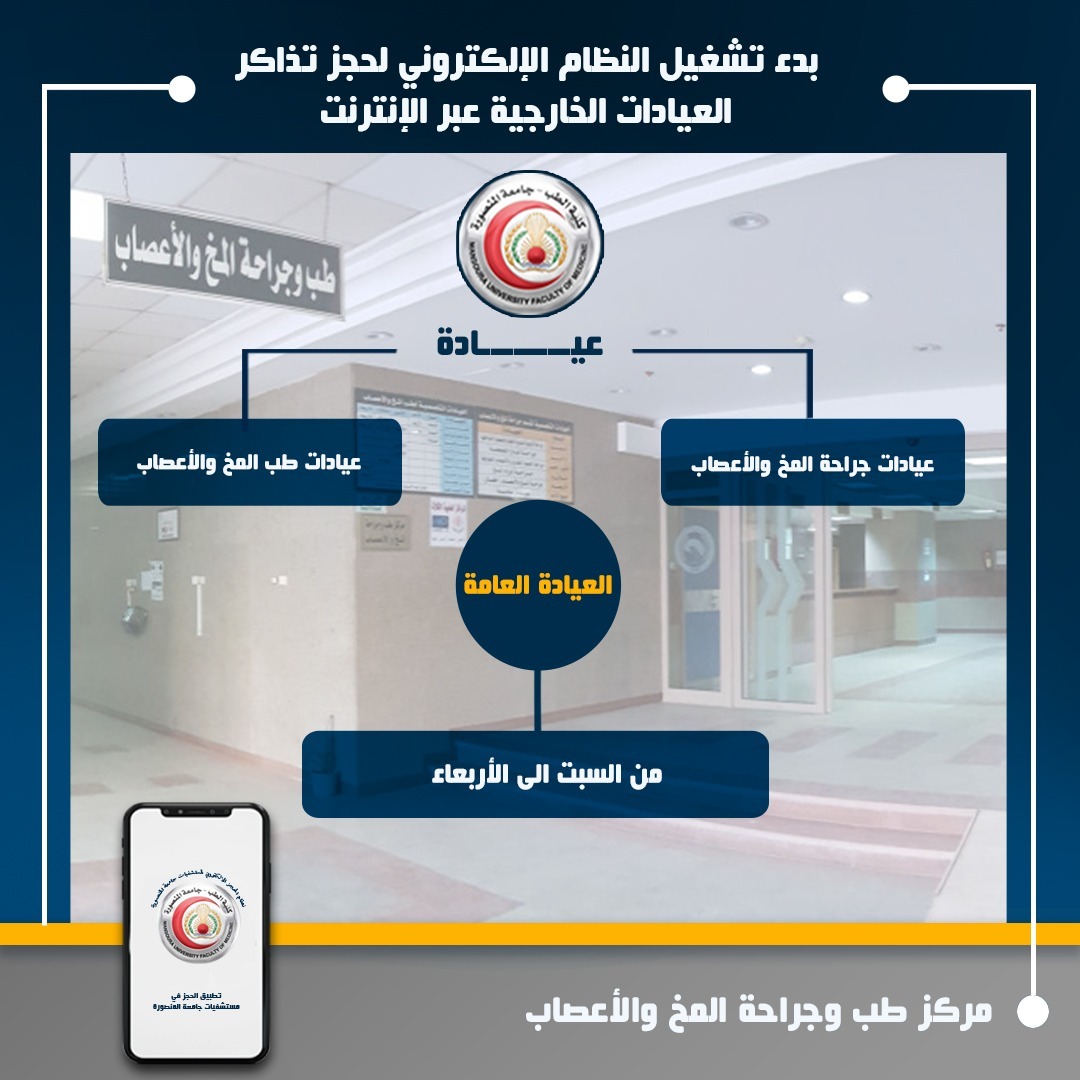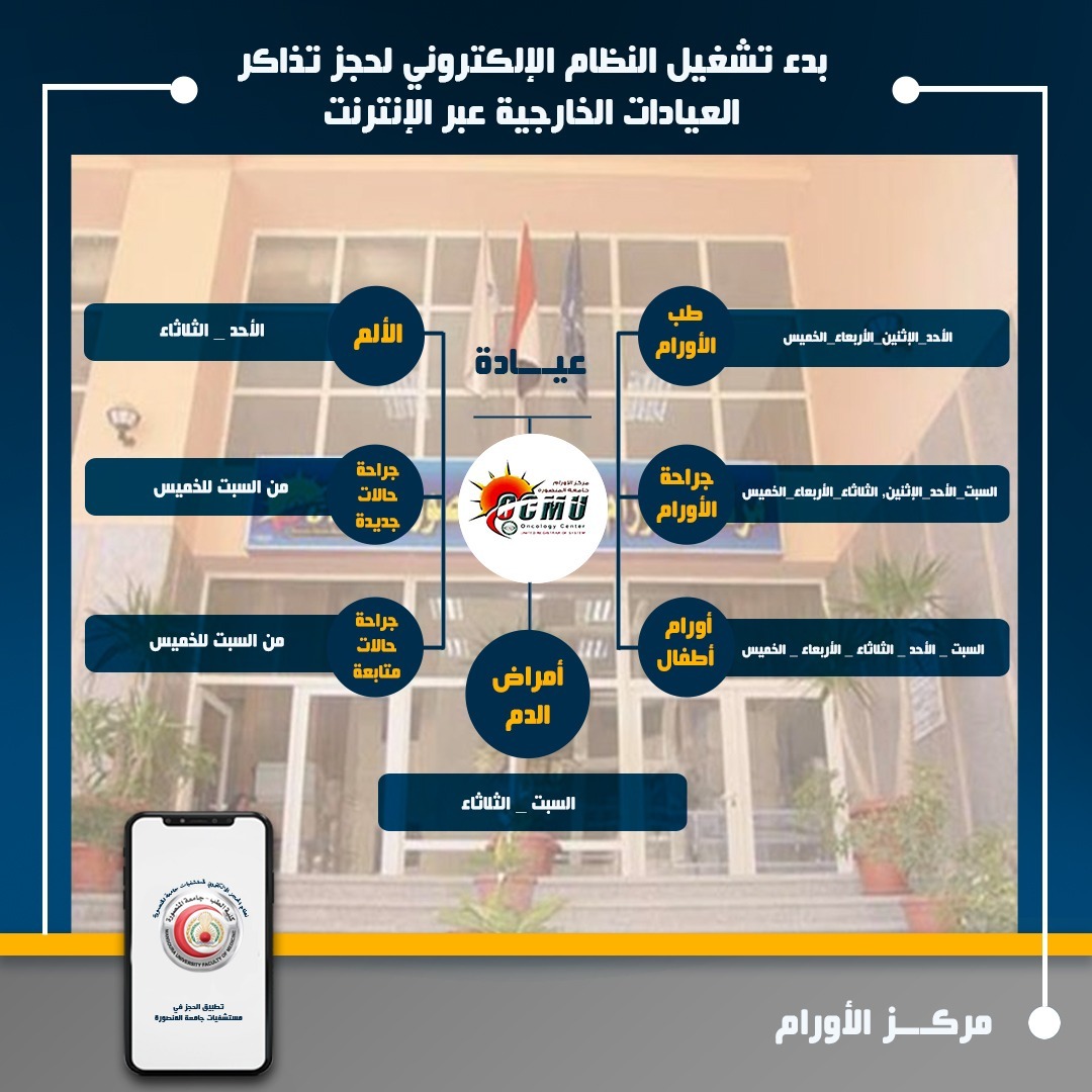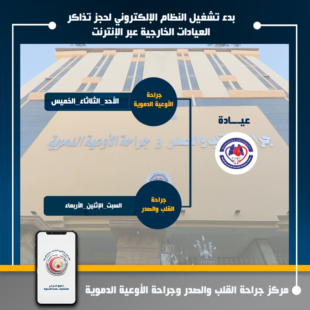 أعلنت جامعة المنصورة اليوم بدء تشغيل النظام الإلكترونى لحجز تذاكر العيادات الخارجية للمستشفيات والمراكز الطبية التابعة لها عبر الإنترنت.
