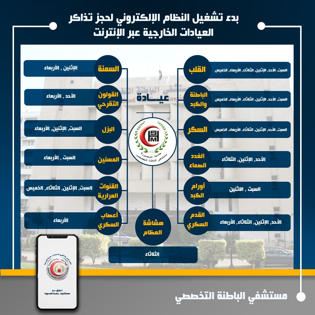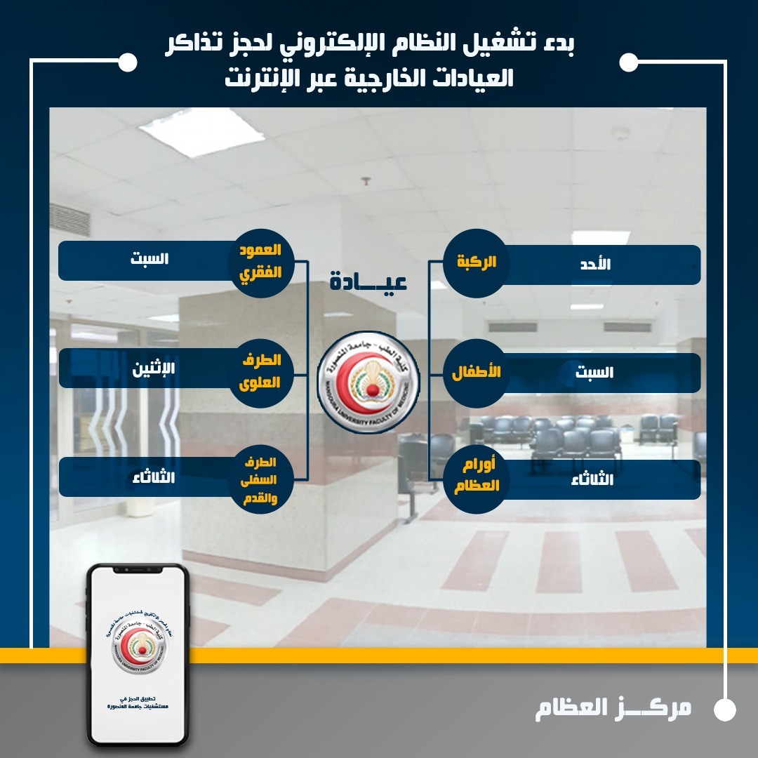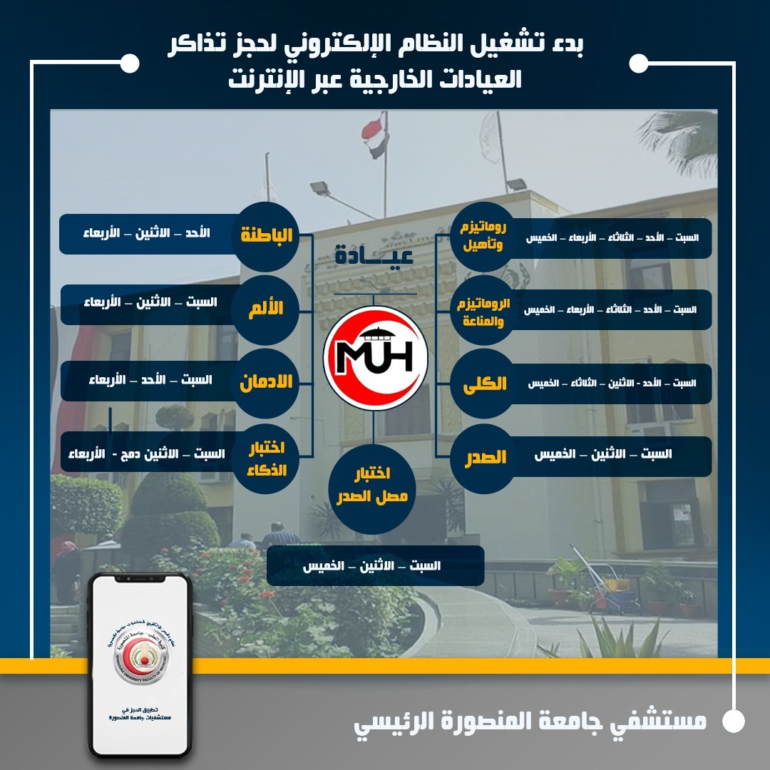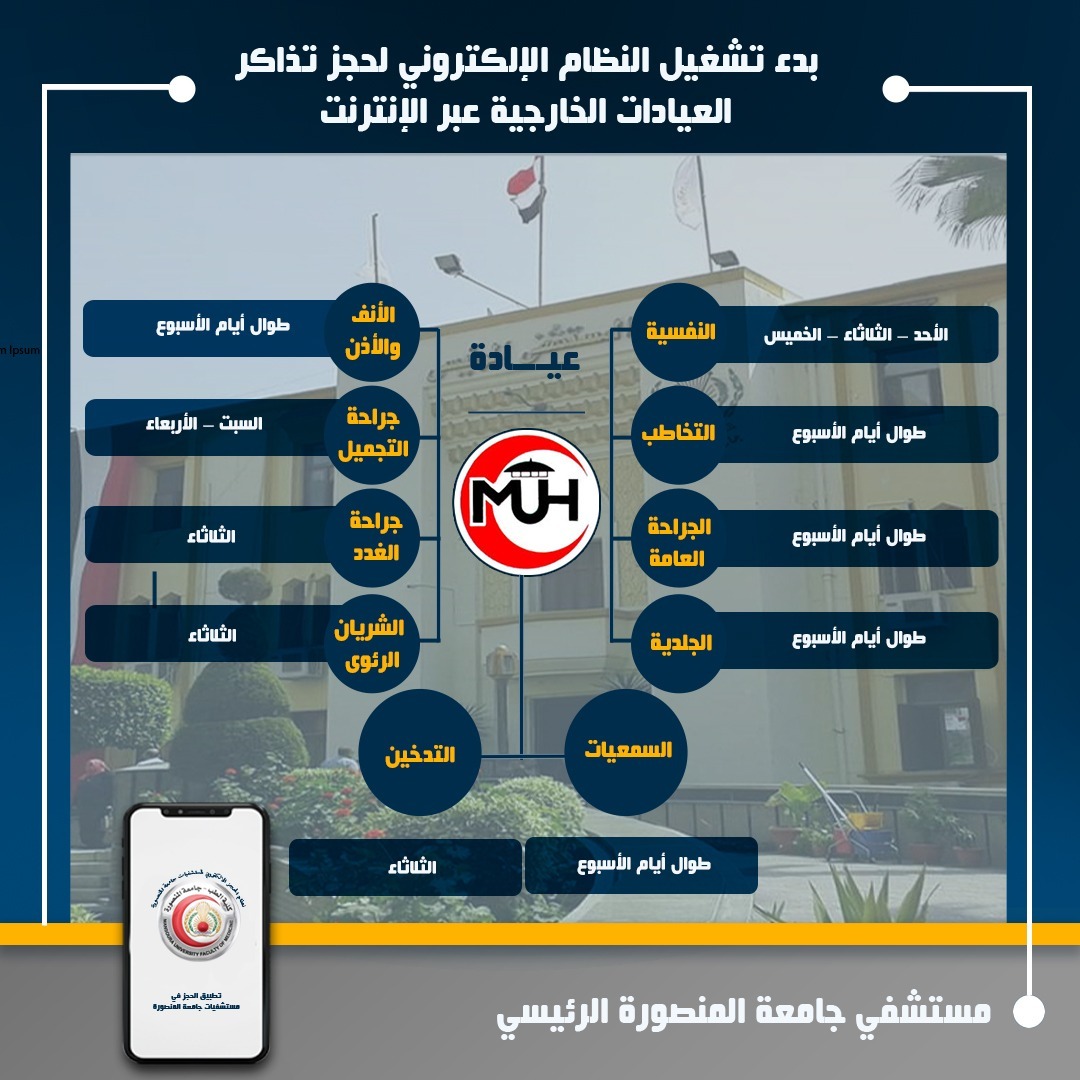 بدء التشغيل التجريبي للحجز الإلكتروني لتذاكر العيادات الخارجية للمستشفيات والمراكز الطبية بجامعة المنصورة