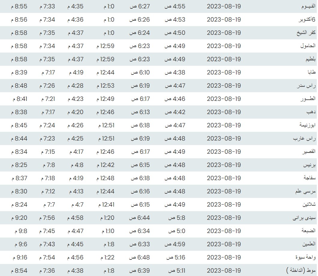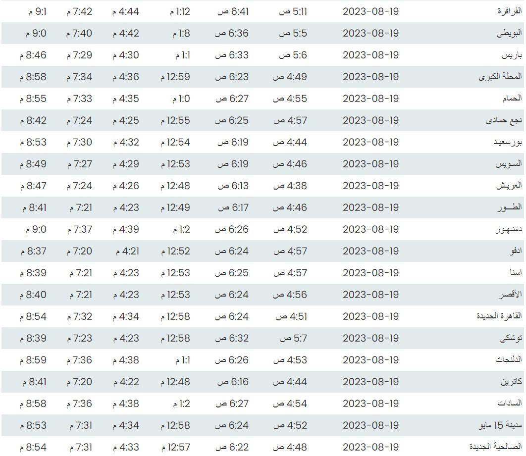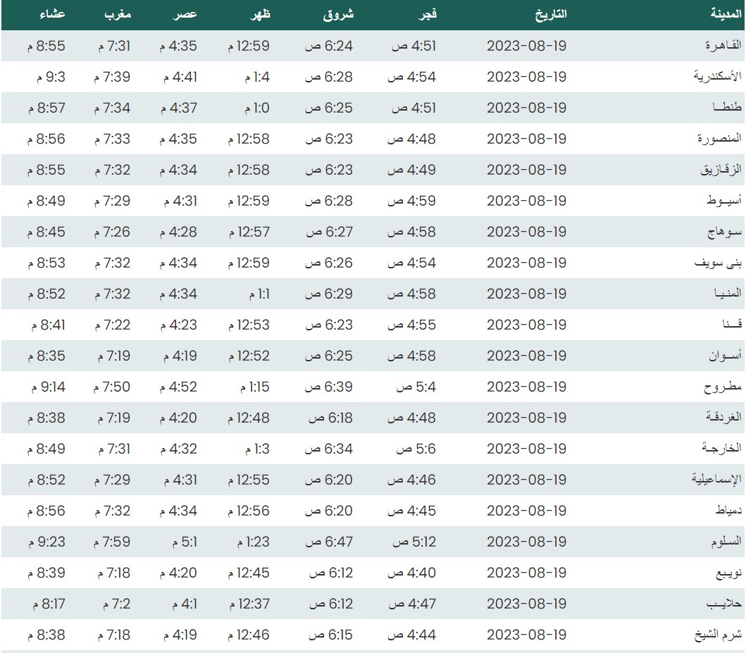 مواقيت الصلاة اليوم، موعد أذان الفجر اليوم السبت 19- 8-2023 بتوقيت القاهرة والمحافظات