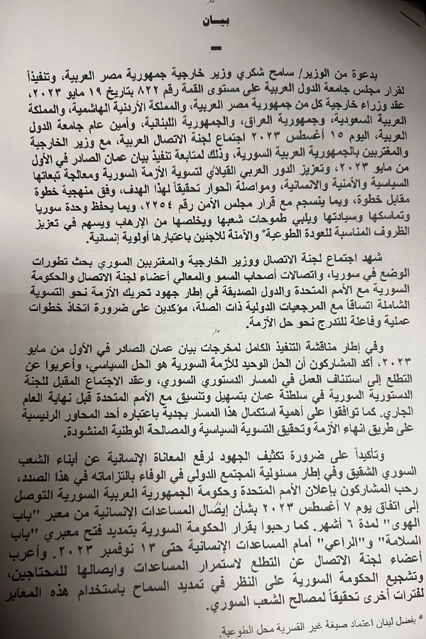ننشر البيان الختامي للجنة الاتصال العربية بشأن سوريا