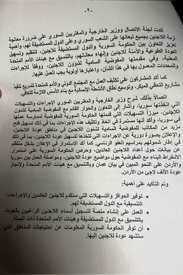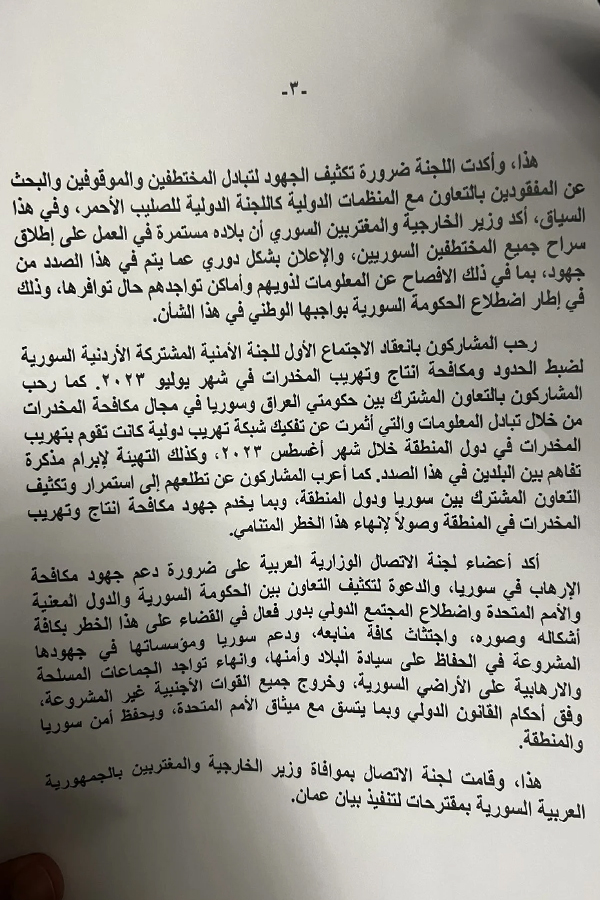كما أشار أن البيان الختامي لاجتماع لجنة الاتصال تطرق لاستضافة عمان لاجتماعات اللجنة الدستورية السورية، موضحا أن استئناف المسار الدستوري له أهميته وتتطلع الدول المشاركة في اللجنة لعقد الاجتماع المقبل قبل نهاية العام الجاري، وسيتم توافق وتنسيق مع المبعوث الاممي جير بيدرسون للتنسيق للاجتماع لضمان مشاركة أوسع وفعالة.