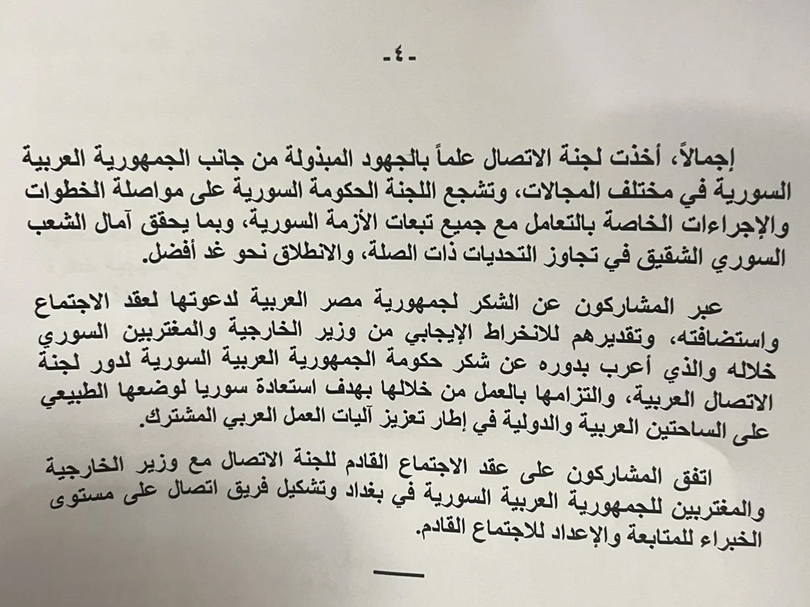 نص البيان الختامي للجنة الاتصال العربية بشأن سوريا