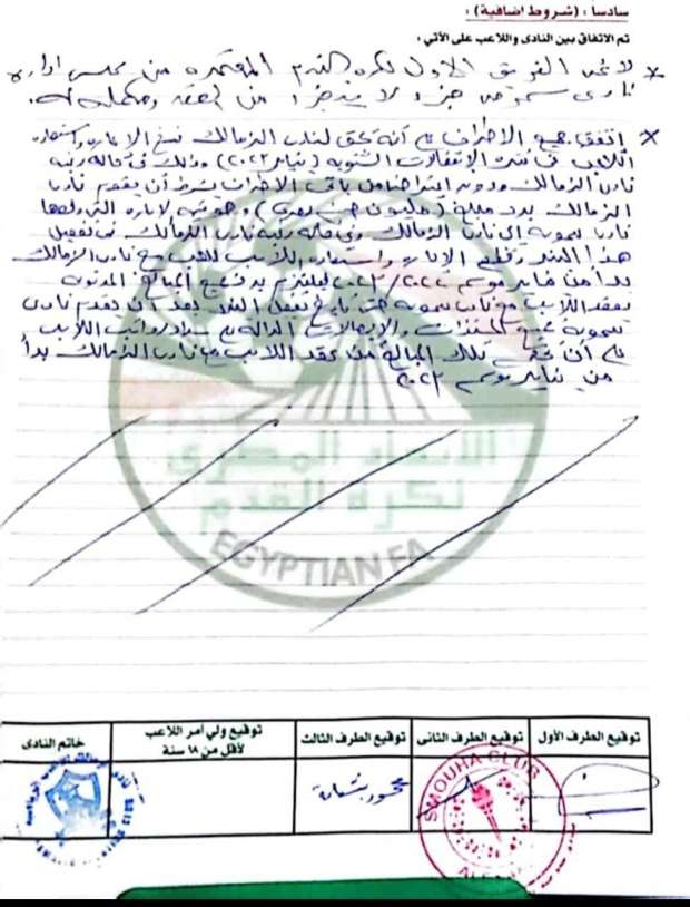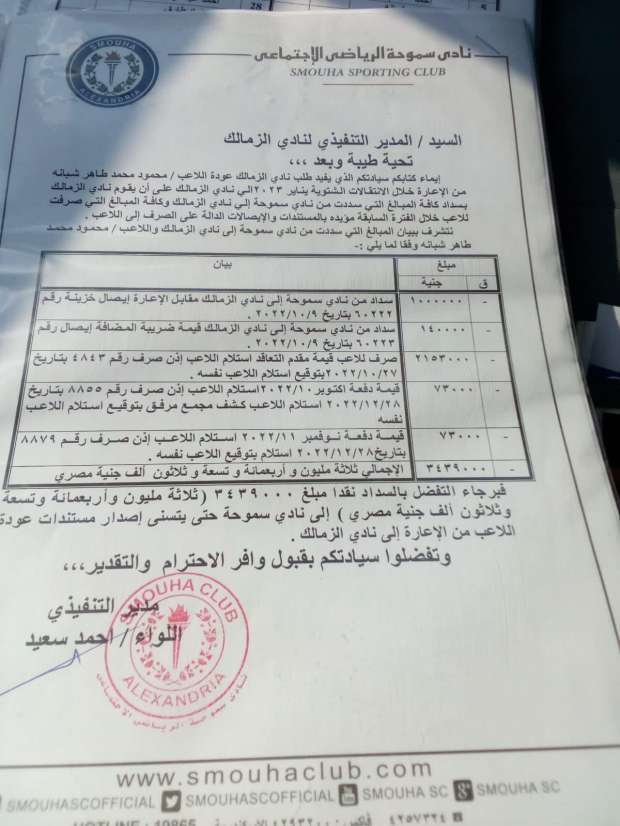 ووفقا للعقد فإن الزمالك عليه أن يدفع لسموحة مبلغ 3.5 مليون جنيه تقريبا.