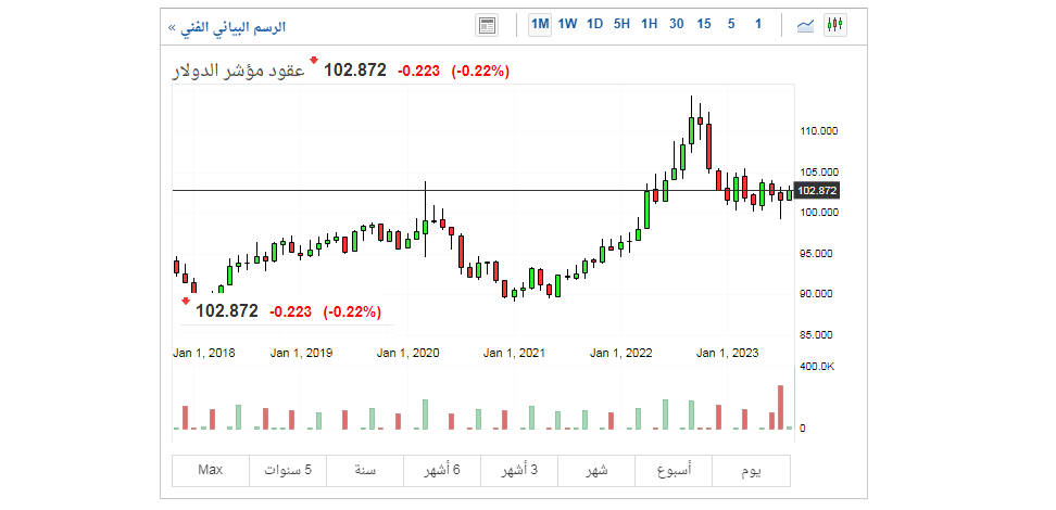 (يتم حساب مؤشر الدولار باعتباره متوسط مرجح من أسعار تلك العملات)