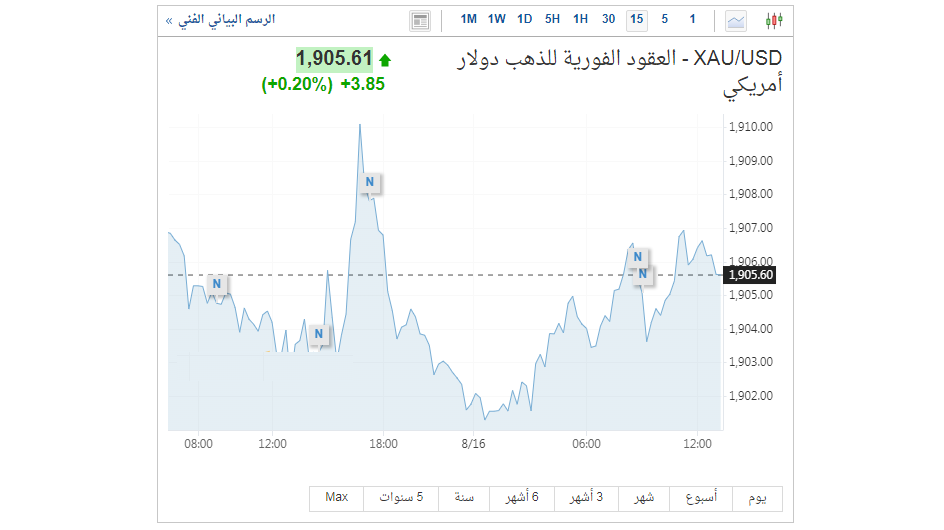 انخفاض يضرب أسعار الذهب، المؤشر العالمي بمنتصف تعاملات الأربعاء 16-8-2023