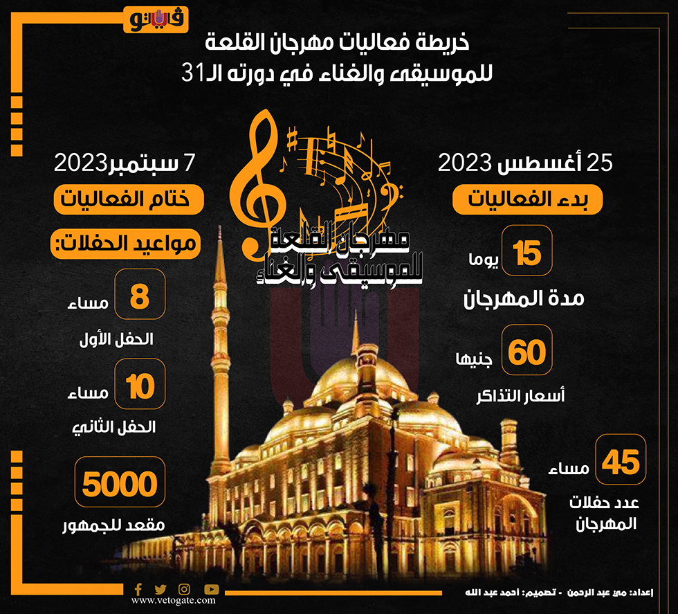 خريطة فعاليات مهرجان القلعة للموسيقى والغناء في دورته الـ31 (إنفوجراف) الأربعاء 16/أغسطس/2023 - 08:57 م 8/16/2023 8:57:05 PM مى عبد الرحمن شارك طباعة 18 حجم الخط شارك طباعة