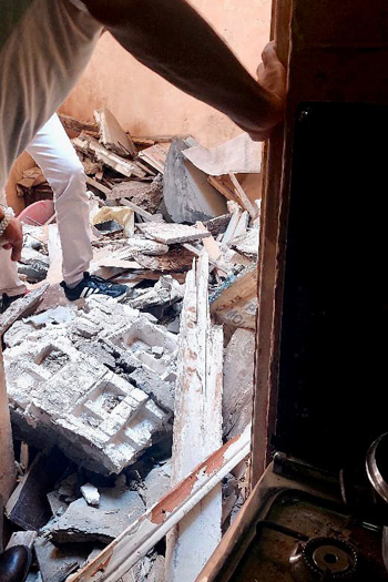 وأسفرت المعاينة عن أن العقار كان مكونًا من طابق أرضي وآخر علوي، وأنه ظهر يوم أمس حدث انهيار كامل لسقف إحدى الغرف الداخلية بالدور الأرضي والذي أدى بدوره لانهيار العقار؛ مما أسفر عن وفاة مواطنة وإصابة اثنتين أخريين.
