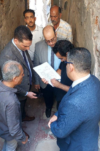 وبالانتقال لموقع العقار لإجراء المعاينة اليوم، وبصحبتهم كل من: مدير عام الإدارة الهندسية بحي وسط، وأحد مهندسي المكتب الفني بمديرية الإسكان والمرافق، وسكرتير عام الحي.