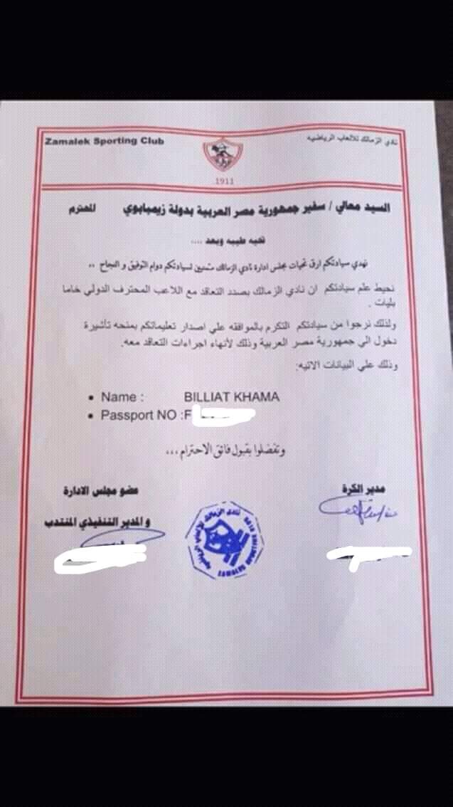 كما تواصل الزمالك مع سفارة مصر في زمبابوي لاستخراج تأشيرة للاعب لدخول الأراضي المصرية لإتمام التعاقد مع اللاعب بصفة رسمية.