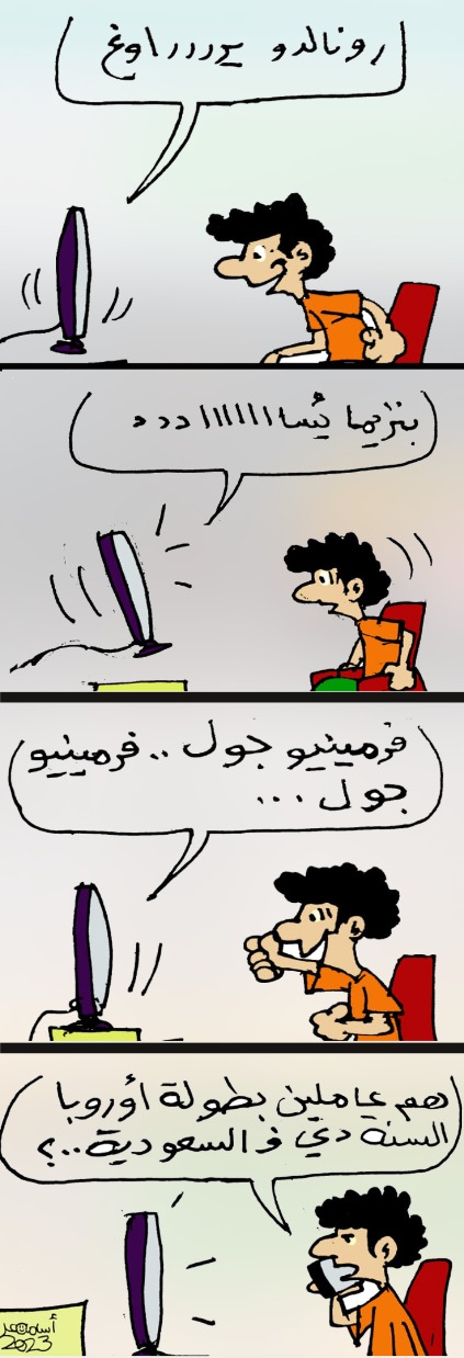 الدوري السعودي في كاريكاتير فيتو الجمعة 18/أغسطس/2023 - 05:00 م 8/18/2023 5:00:11 PM الدوري السعودي في كاريكاتير فيتو اسامة علي شارك طباعة 18 حجم الخط شارك طباعة الدوري السعودي أغلى صفقات الدوري السعودي فيتو ساخرون بوابة فيتو كاريكاتير فيتو رونالدو بنزيما