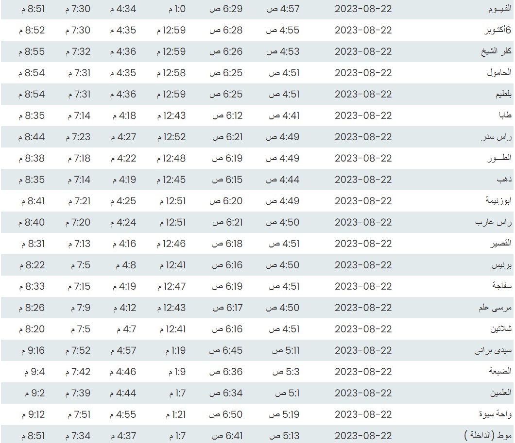 مواقيت الصلاة اليوم بتوقيت القاهرة