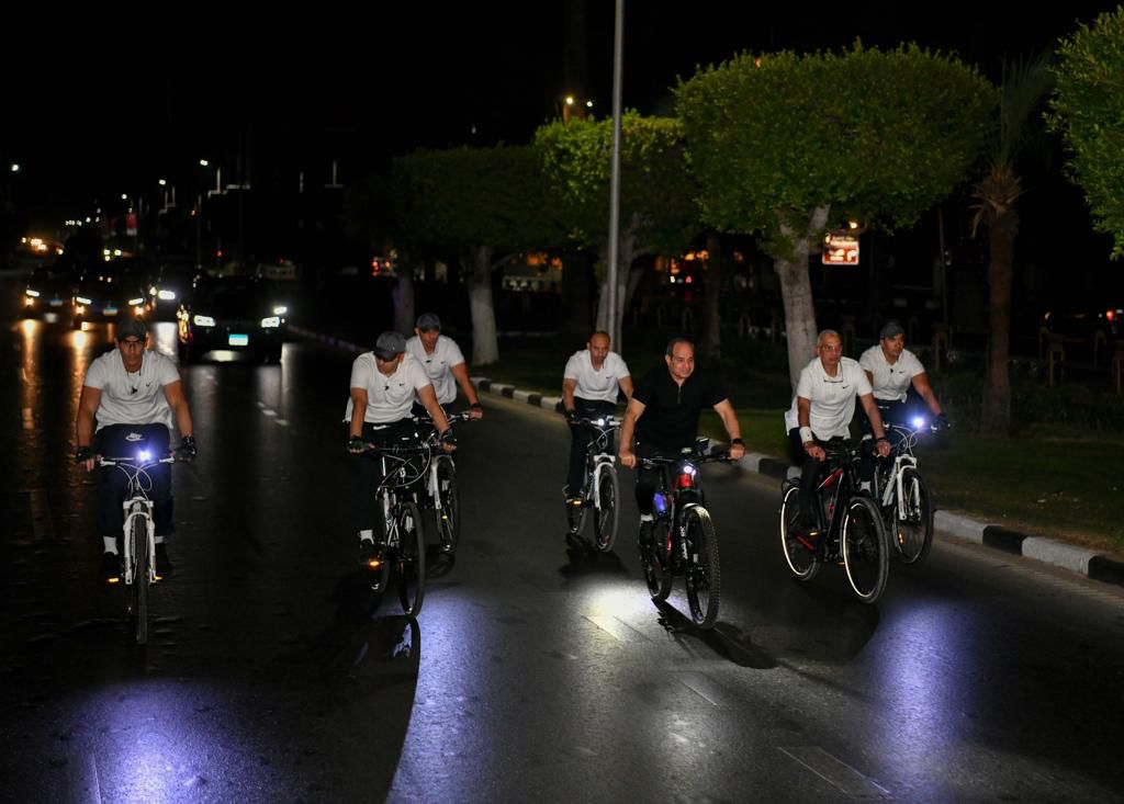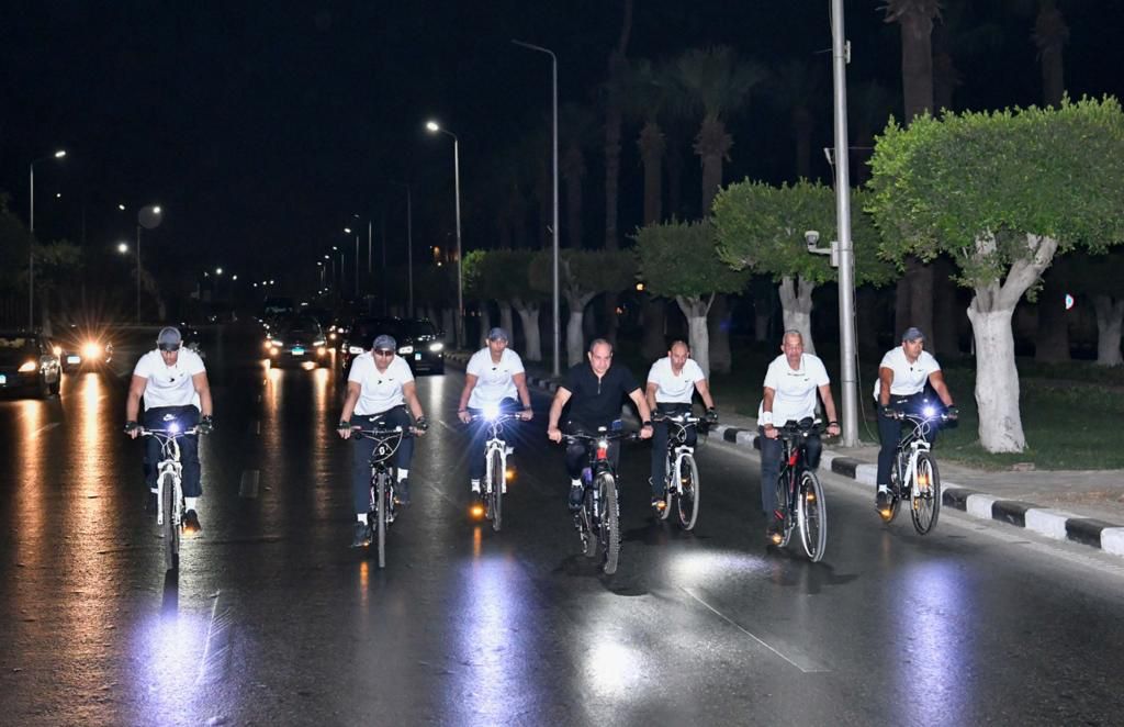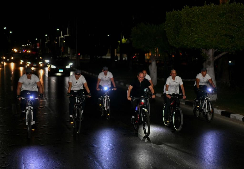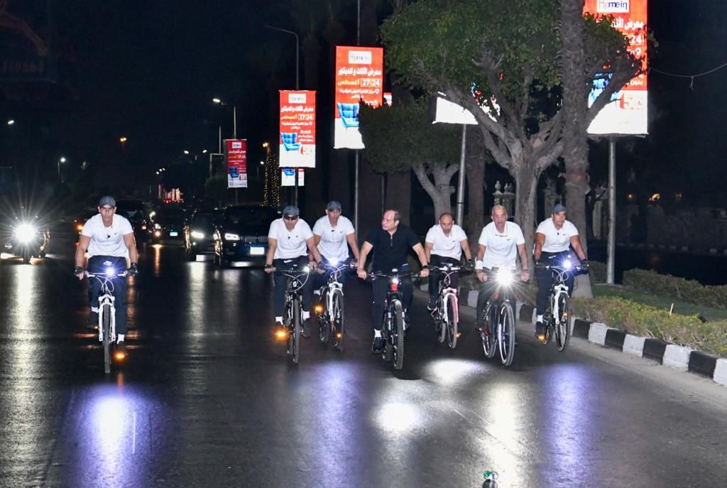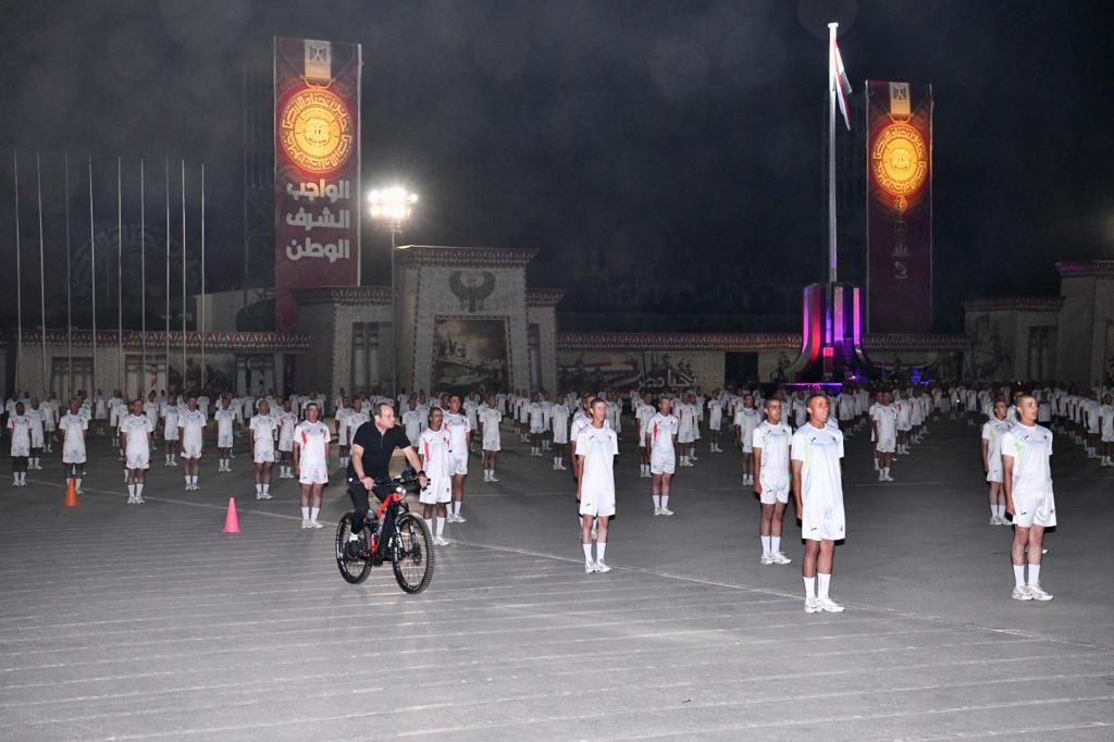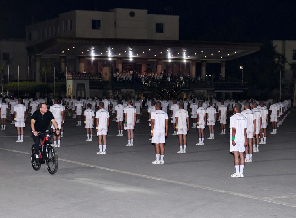 ووصل الرئيس السيسي الكلية الحربية بالدراجة.