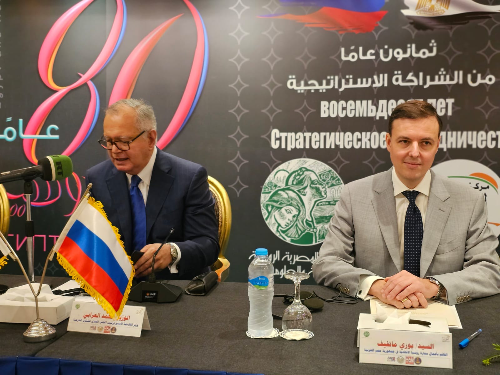 وأكد القائم بأعمال السفير الروسي بالقاهرة خلال كلمته بمؤتمر “مصر - روسيا ثمانون عامًا من الشراكة الإستراتيجية” أن العلاقات الدبلوماسية المصرية الروسية لها خصوصية كبيرة حيث بدأت قبل 80 عامًا في ذروة الحرب العالمية الثانية ووصلت إلى أعلى درجاتها مع قيام ثورة يوليو 1952 وتولى الرئيس جمال عبد الناصر مقاليد الحكم في مصر، حيث بدأت من يومها علاقات وطيدة تم ترجمتها في مساهمة الاتحاد السوفيتي في نشر تطوير الصناعة في مصر حيث ساهمت روسيا السوفيتية في أنشاء القلاع الصناعية العملاقة بداية من مجمع الحديد والصلب في حلوان ومجمع الألومنيوم في نجع حمادي إلى جانب مشاركة المهندسين السوفيت في بناء السد العالي في أسوان ومد خطوط الكهرباء من أسوان إلى الإسكندرية، والتي وفرت الطاقة لتحقيق خطط التنمية المختلفة في مصر.