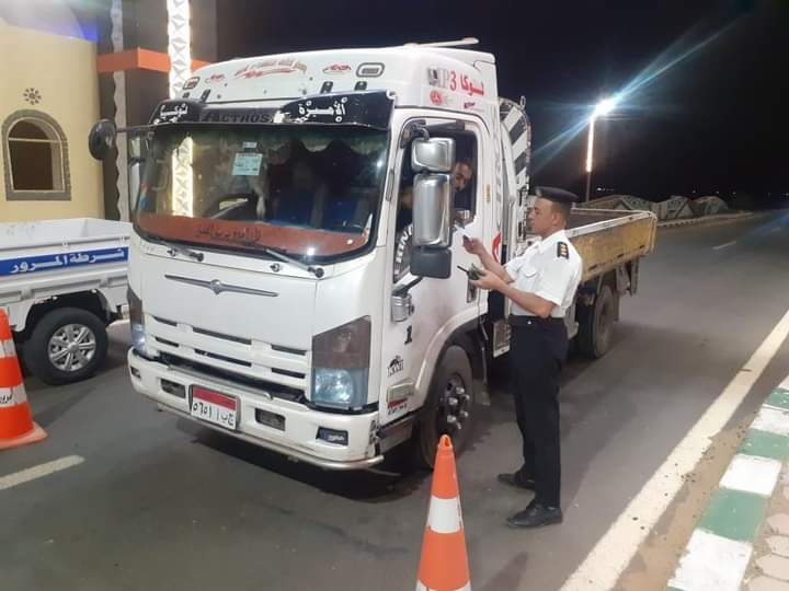 شنت إدارة مرور محافظة الوادي الجديد، حملة مرورية ليلية بمركز الخارجة لضبط الإيقاع المروري ومتابعة الحركة المرورية بالشوارع والميادين.