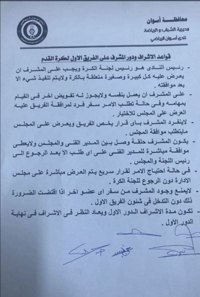 استقالات بمجلس إدارة نادي أسوان بعد اعتذار لجنة الكرة عن عدم استكمال مهامها