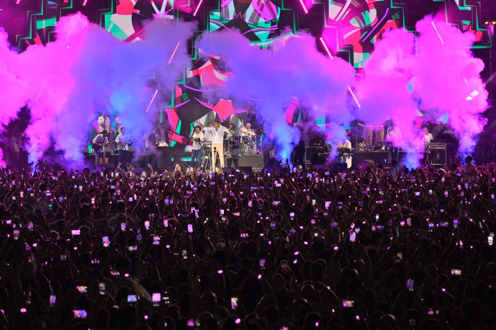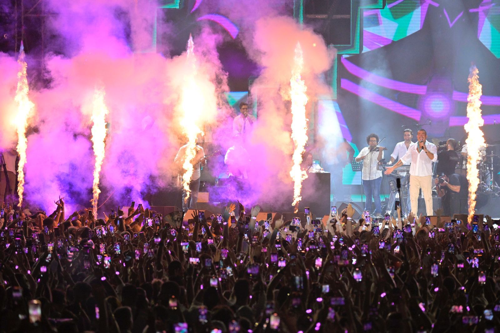 واحتشد الجمهور بالآلاف في مسرح الحفل قبل انطلاقه بساعات مرتديا الملابس البيضاء في أجواء من البهجة والسعادة، حيث صعد عمرو دياب على أنغام أغنيته الشهيرة "يا أنا يا لأ" وسط تفاعل كبير من الجمهور الذي هتف ورقص على أغنيات الهضبة منذ البداية وعلى مدار ساعتين.