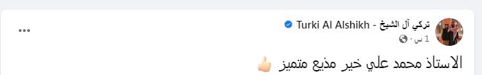 ونشر تركي آل الشيخ، رئيس الهيئة العامة للترفيه والرياضة بالسعودية، على حسابه الشخصي بموقع التواصل الاجتماعي فيس بوك، قال فيها: “أتمنى من قنوات SSC الناقلة للدوري السعودي التعاقد مع تامر بدوي للاستفادة منه في تحليل المباريات ليكون لدى القناة نخبة من كل المبدعين في الوطن العربي”.