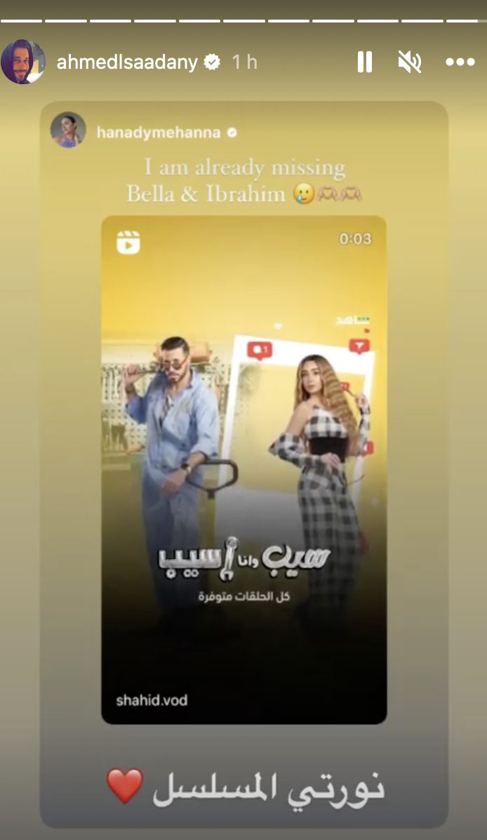 مسلسل سيب وانا اسيب، علق أحمد السعدني على “ستوري” نشرتها الفنانة هنادي مهنا عبر حسابها الرسمي على إنستجرام والتي عبرت من خلالها عن افتقادها لشخصيات السعدني وهنا الزاهد في مسلسل سيب وأنا أسيب قائلًا “نورتي المسلسل”.