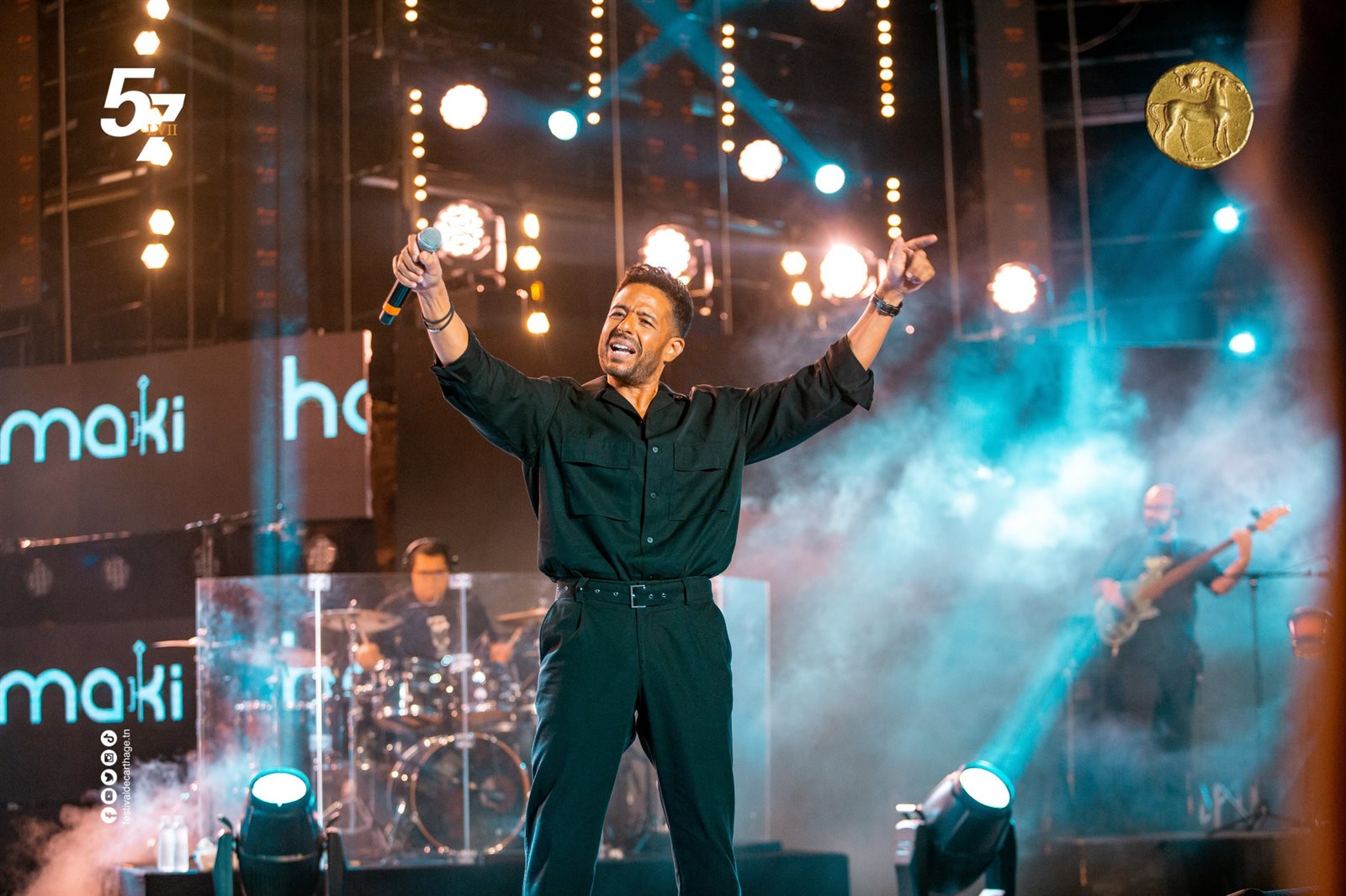 أحيا الفنان محمد حماقي حفل ختام مهرجان قرطاج الدولي رافعا شعار كامل العدد.