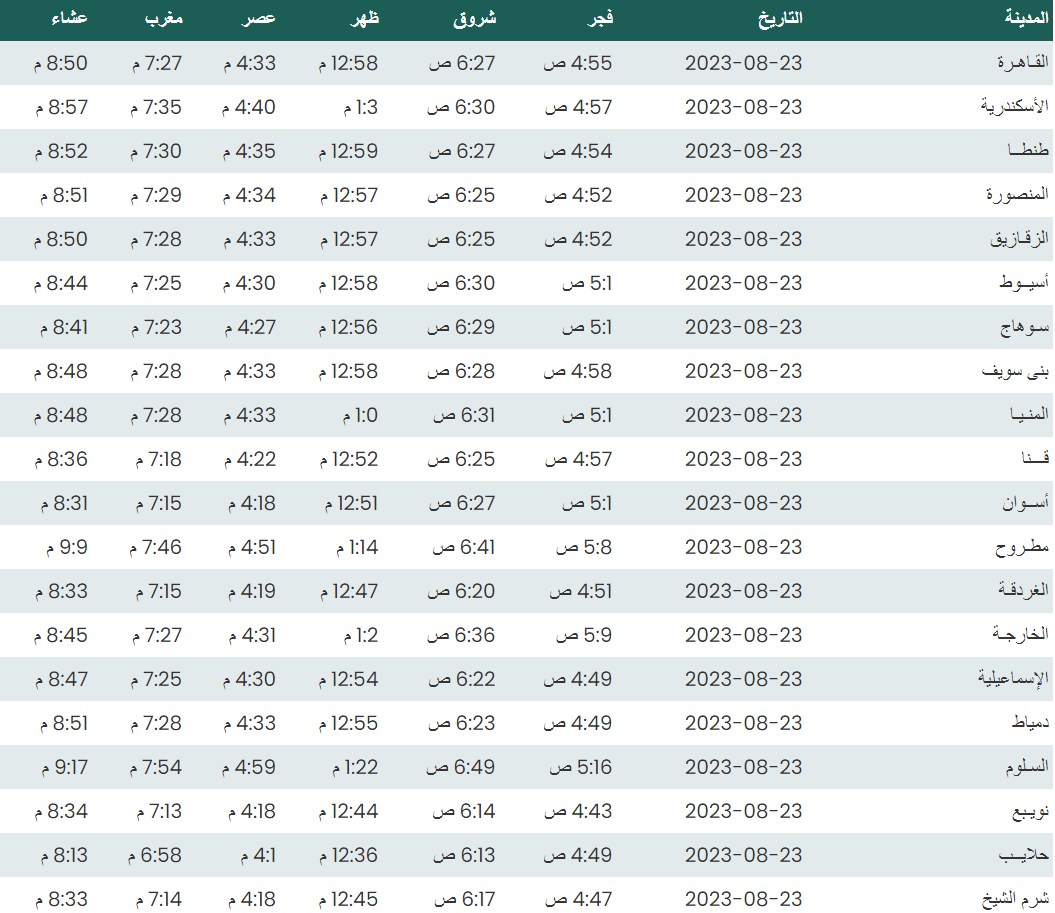 مواقيت الصلاة اليوم بتوقيت القاهرة