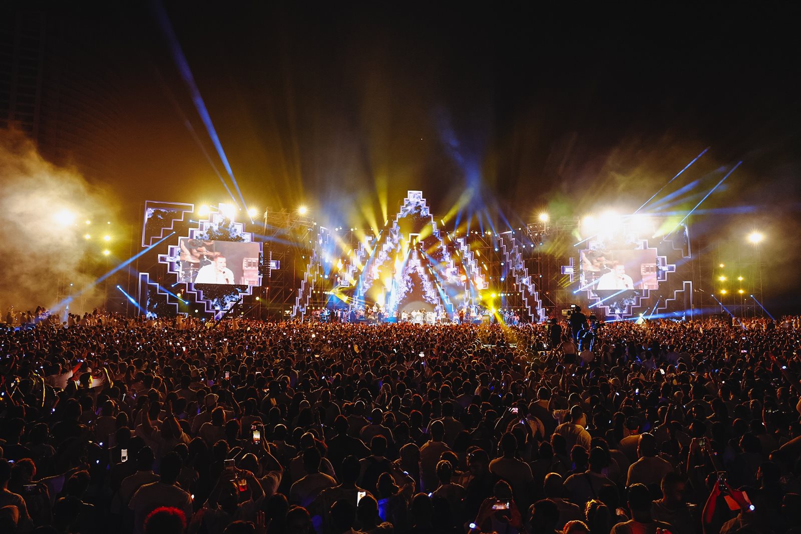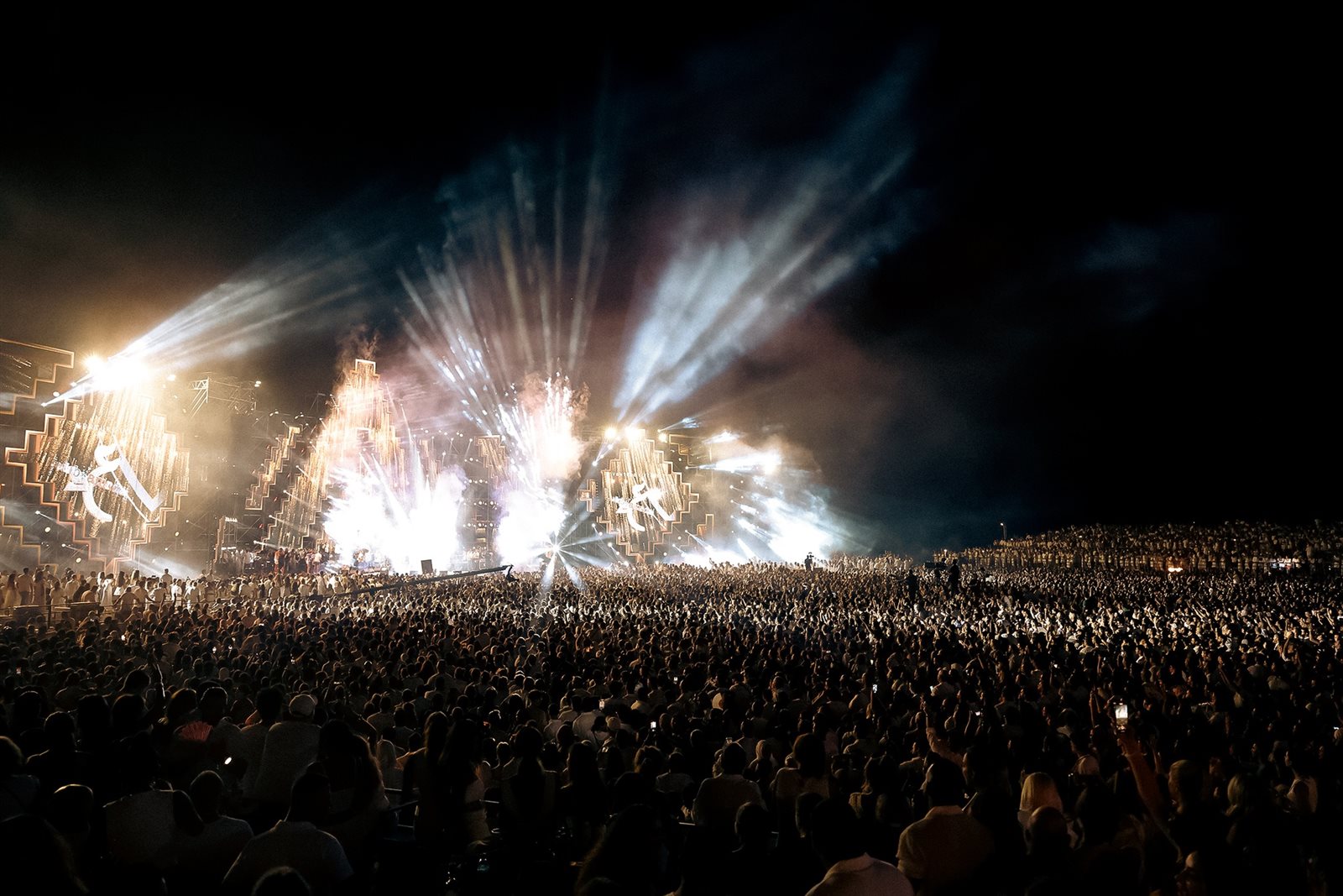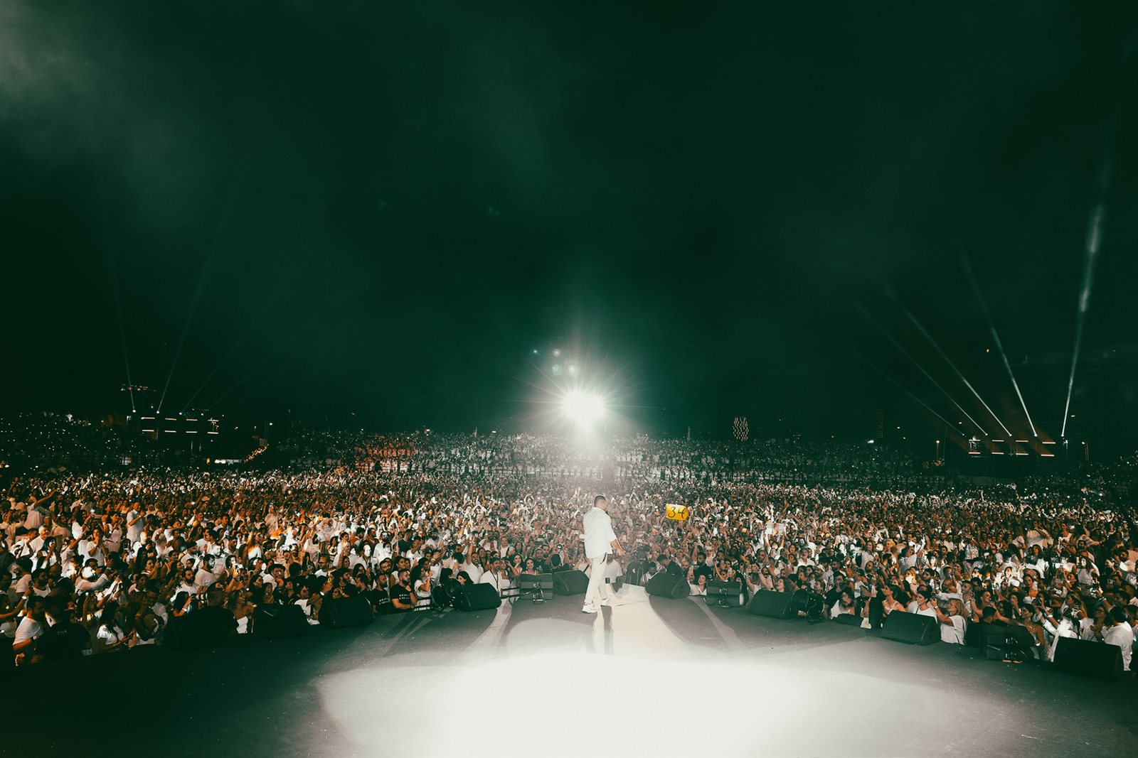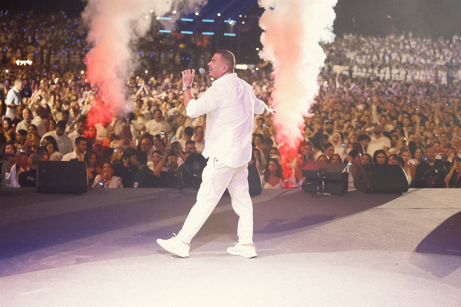 واحتشد الجمهور بالآلاف في مسرح الحفل قبل انطلاقه بساعات مرتديا الملابس البيضاء في أجواء من البهجة والسعادة، حيث صعد عمرو دياب على أنغام أغنيته الشهيرة "يا أنا يا لأ" وسط تفاعل كبير من الجمهور الذي هتف ورقص على أغنيات الهضبة منذ البداية وعلى مدار ساعتين.