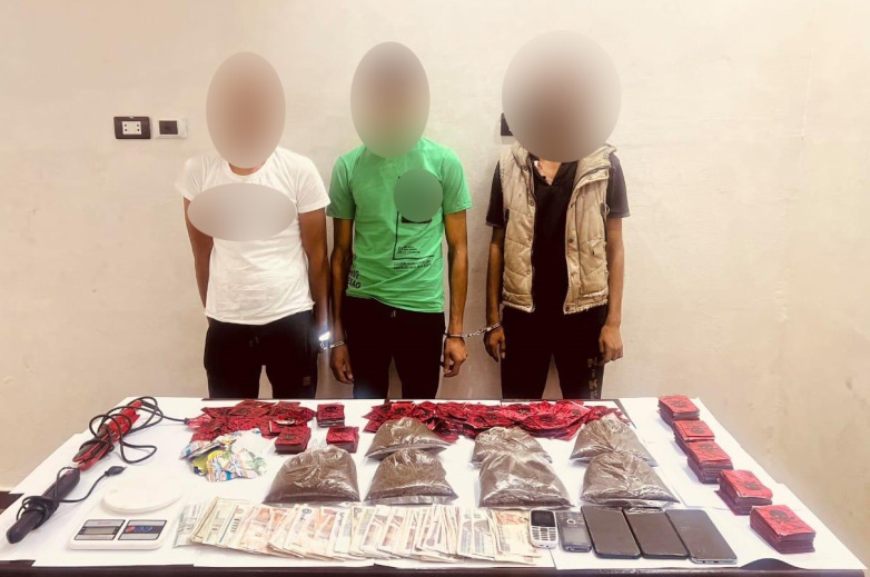 وبمواجهتهم اعترفوا بحيازتهم للمواد المخدرة بقصد التصنيع والإتجار، والمبلغ المالي من متحصلات نشاطهم الإجرامي، والهواتف المحمولة لتسهيل الاتصال بعملائهم وتم اتخاذ الإجراءات القانونية.